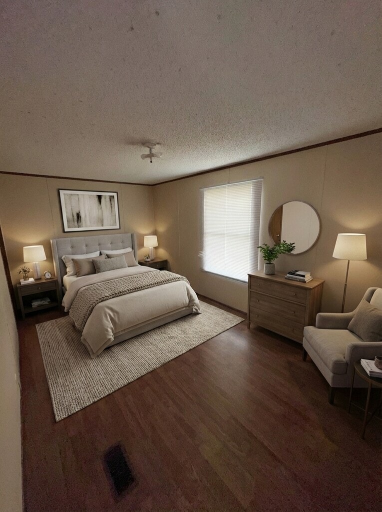 Located in a quiet, well-maintained, and very safe community, this home offers comfort, privacy, and convenience. The property features a welcoming front porch, a private yard, and a dedicated driveway for off-street parking.Inside, you’ll find a large and spacious living room with built-in cabinets and plenty of room for a TV setup and optional home office area. The primary bedroom includes a walk-in closet and a spacious bathroom with a large garden tub—perfect for relaxing after a long day.Washer and dryer hookups are available for tenant use.Pets are allowed with breed restrictions and a $500 non-refundable pet fee.Rent includes lot rent. Tenant is responsible for all other utilities.Lease term is one year.