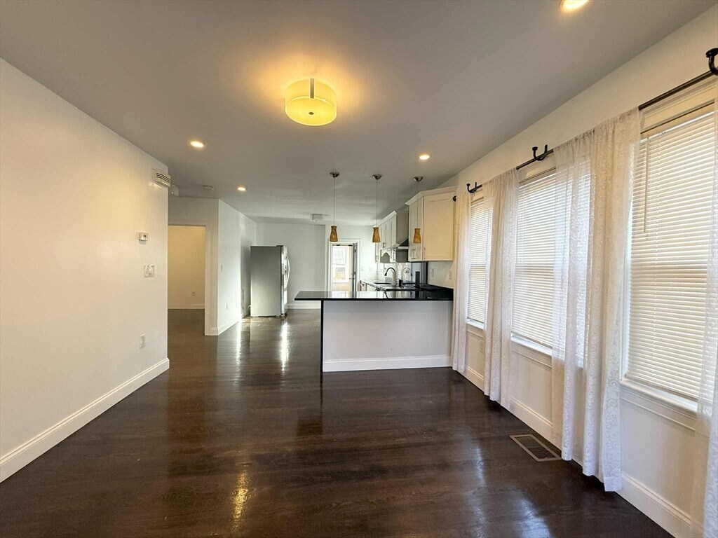 Newly renovated 2 bed plus office in North Quincy,available for immediate move in. Large open floor plan with a modern kitchen featuring stainless steel appliances & breakfast bar. Two equal sized bedrooms,plus a bonus room - great for a home office. Hardwood floors throughout. Enjoy conveniences like central AC,additional storage & laundry in the basement. Off street parking included. Less than a mile to N Quincy (red) T station & easy access to I-93. Enjoy nearby Wollaston Beach,local restaurants like Reelhouse & Break Rock Brewing at Marina Bay. Stay active at the local golf course or Capella Yoga,and enjoy the walking & nature trails of Squantum Point Park. MLS# 73452805