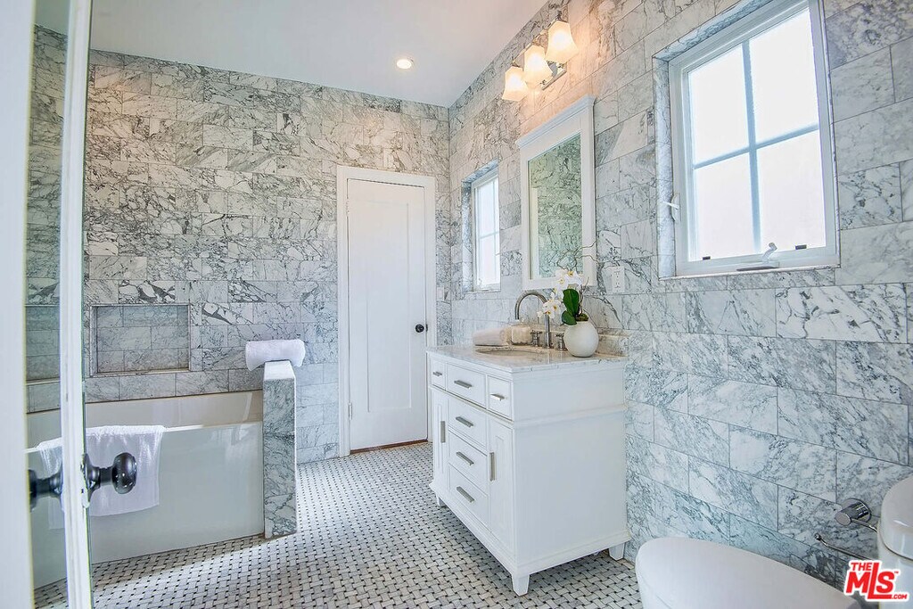 Completely remodeled, in classic taste, 4 bed + 3.5 bath Hancock Park lower duplex unit on tree lined Orange Ave. Spacious large living room with decorative fireplace is bathed in sunshine and opens to the dining room, perfect for entertaining. Fully renovated kitchen with center island, stainless steel appliances, marble counters, abundant storage, adjacent breakfast room + laundry room. Primary suite with walk-in closet, marble bath with both shower and tub. 3 additional bedrooms, all with adjacent or ensuite bathrooms. Separate walkway for both the upstairs and the downstairs units for privacy. Front porch belongs to downstairs tenant and backyard + driveway is shared by both tenants. Small pets ok! Hardwood floors, central AC/heat. No garage included with the rental. Amazing location close to shops, restaurants, places of worship, etc. Easy to show! Garage is currently under construction and being converted into an ADU that will be rented to one tenant, bringing the total number of units on the property to three. Lease rate is $5,800 during construction and will adjust to $6,200/month upon completion. MLS# 25625471