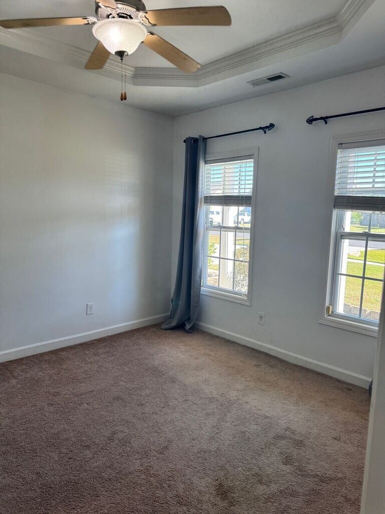 Gorgeous 3 bedroom, 2 bath home in Sterling Farms, one of the few neighborhoods with a community pool! As you enter, you'll notice the cozy atmosphere in the living room with nice laminate flooring and a vaulted ceiling. The kitchen includes a stainless steel refrigerator, electric stove, dishwasher, and built-in microwave. The main bedroom comes with its own private bathroom, tray ceiling, walk-in closet, and ceiling fan. All three bedrooms are carpeted and have great natural light. Don't forget about the HUGE fenced lot that backs up to a lovely tree line for privacy! Small dogs under 40 lbs are allowed. Come see this beauty in person! **All residents are enrolled in the Resident Benefits Package (RBP) for $55.95/month which includes liability insurance, credit building to help boost the resident's credit score with timely rent payments, up to $1M Identity Theft Protection, HVAC air filter delivery (for applicable properties), our best-in-class resident rewards program, on-demand pest control, and much more! More details upon application.**