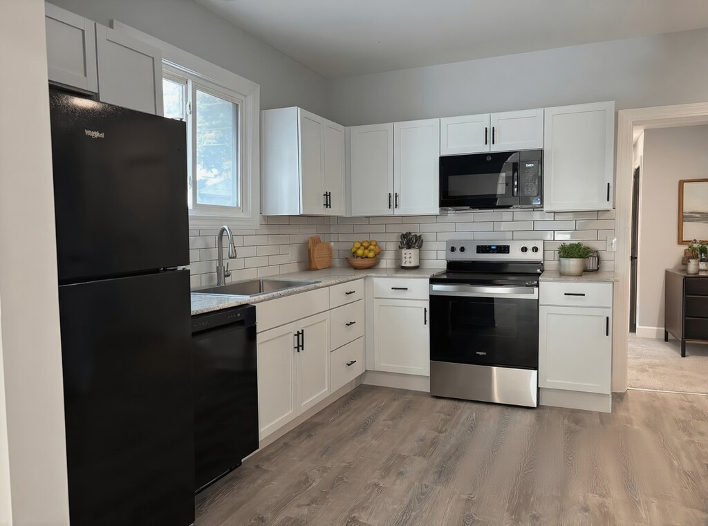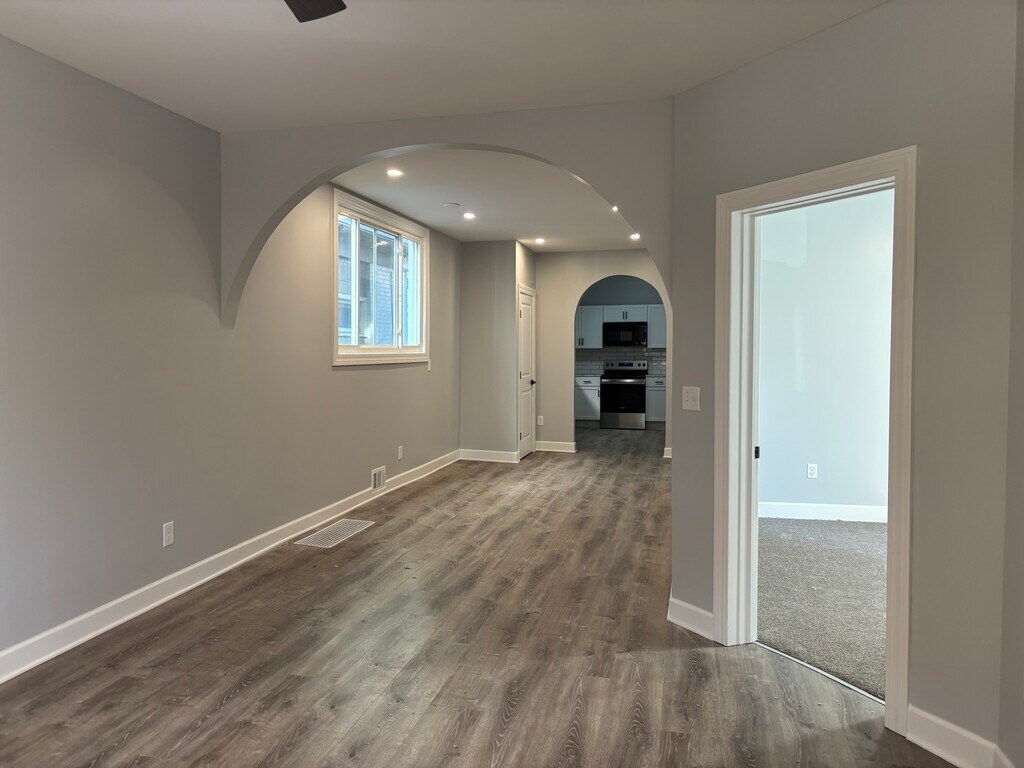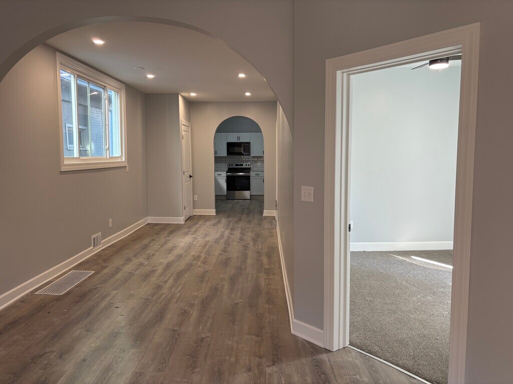 Be the first to live in this fully renovated 3-bedroom, 1-bath apartment in Buffalo’s West Side. With over 1,200 sq. ft. of thoughtfully updated living space, this home blends modern finishes with unique architectural details like arched entryways and recessed lighting.Brand-new kitchen with subway tile. backsplash, stainless/black appliances, dishwasher & microwave.In-unit laundry with new stacked washer/dryer.Spacious layout with vinyl plank flooring in common areas & plush carpeted bedrooms.Designer bathroom with tiled shower surround, LED vanity mirror, and sleek fixtures.Ceiling fans & energy-efficient lighting throughout.Ample closet/storage space.Enjoy a large private green space for barbecues etcEnjoy lightning fast WiFiPrime Location: Steps from D’Youville University, minutes to Five Points, Elmwood Village, and downtown Buffalo. Walking distance to local favorites like BreadHive, Roost, and Remedy House, plus easy access to Front Park, the waterfront, and the Peace Bridge to Canada.