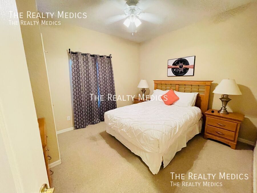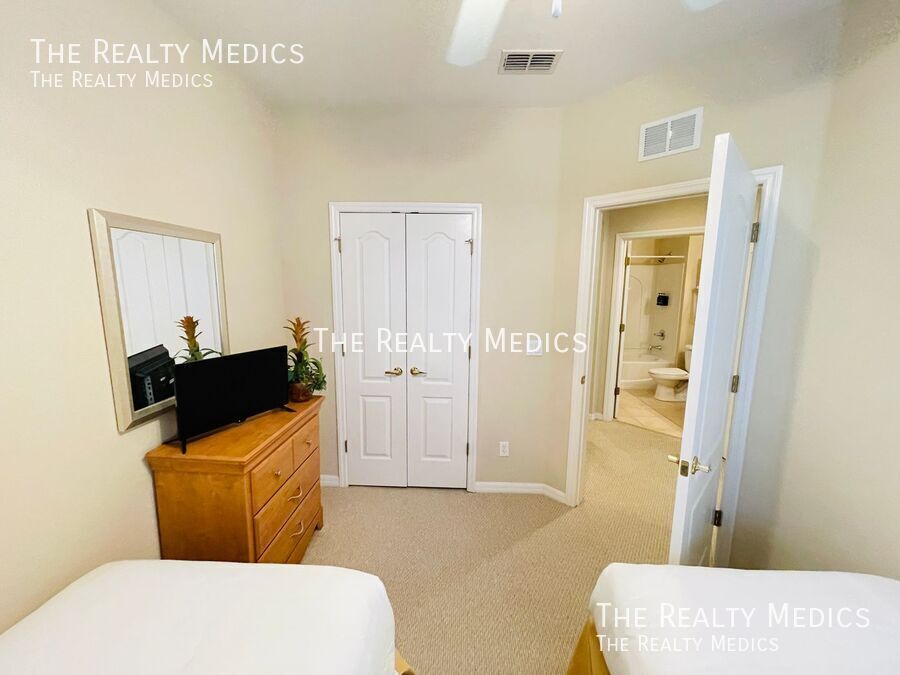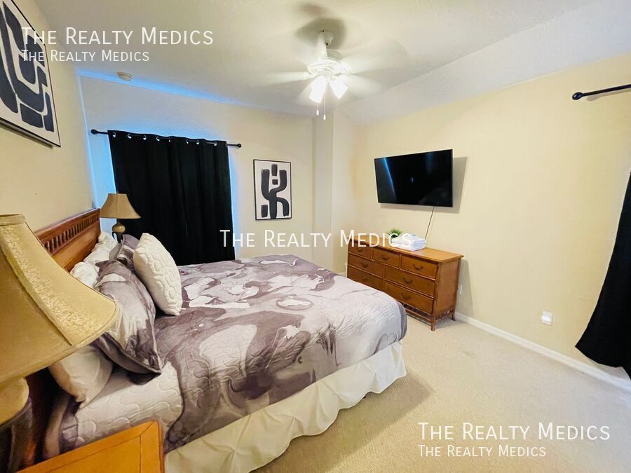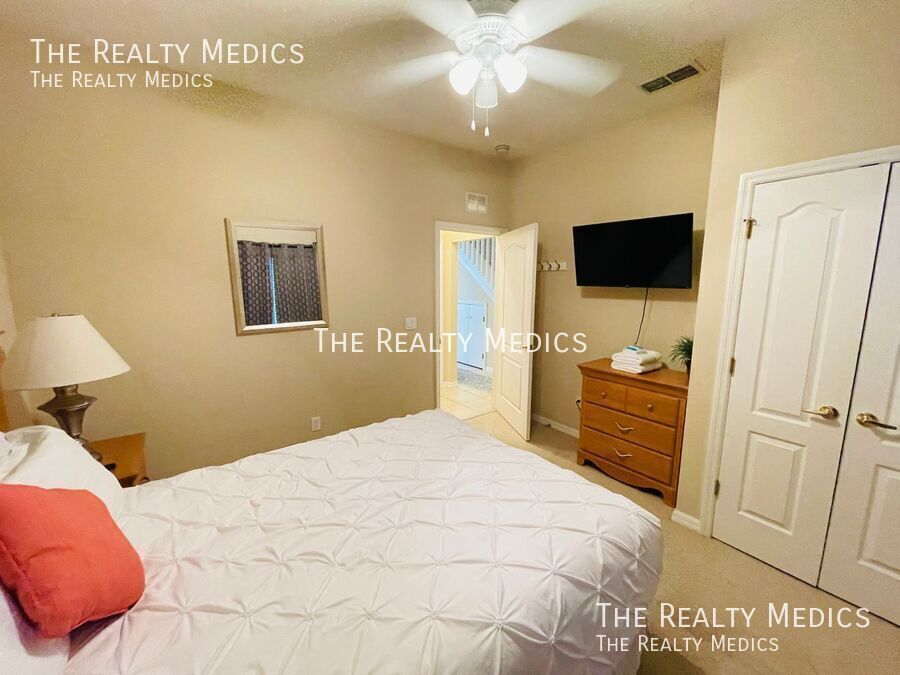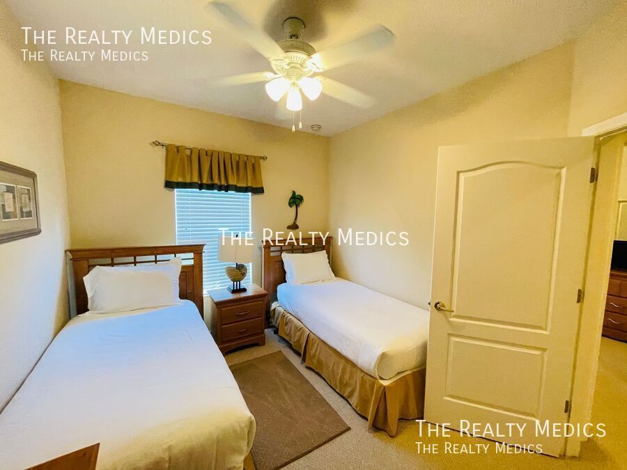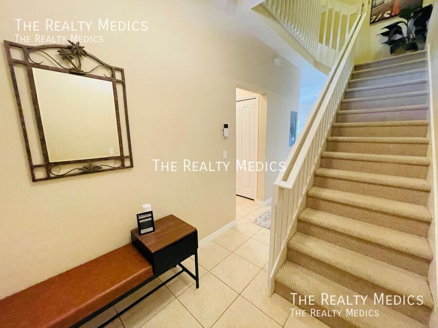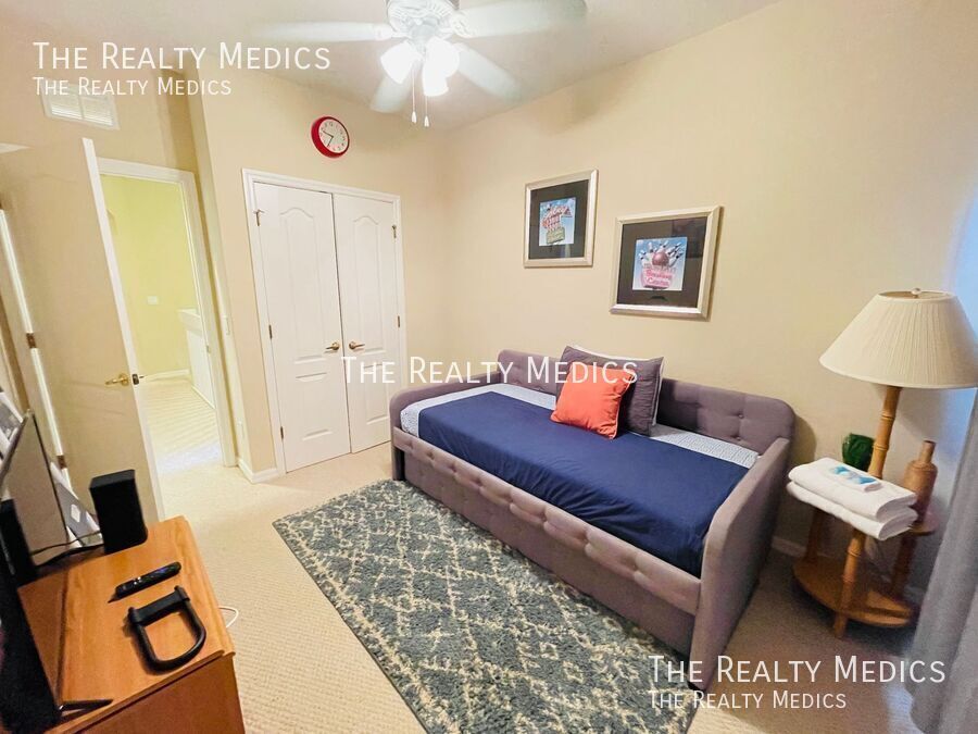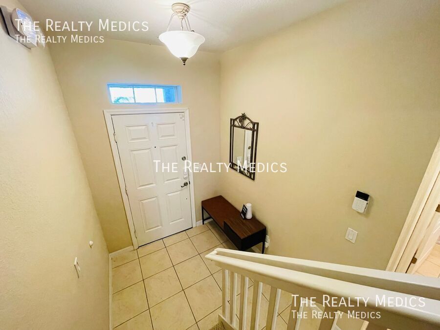 Discover resort-style living in this beautifully maintained 5-bedroom, 3-bath end-unit townhome tucked away in the peaceful, gated community of Coral Cay in Kissimmee. Lightly lived in and never previously rented, this home offers a rare combination of comfort, privacy, and convenience — and comes fully furnished and move-in ready. The open-concept main floor welcomes you with bright, spacious living and dining areas that flow seamlessly into a modern kitchen — perfect for gatherings or relaxing evenings at home. Step out through sliding doors to your private screened patio and hot tub, an ideal spot to unwind with no rear neighbors for added tranquility. A main-floor bedroom and full bath provide flexible living options, while the upstairs master suite and three additional bedrooms offer plenty of space for family, guests, or a home office setup. Residents of Coral Cay enjoy access to outstanding amenities, including a clubhouse with a movie theater, community pool, fitness center, volleyball court, and two playgrounds — all within a short drive to Disney, Universal, SeaWorld, Gatorland, and major highways connecting to beaches and shopping destinations. Whether you’re a family seeking a peaceful community or professionals looking for a well-appointed home near Orlando’s attractions, this property delivers the comfort, convenience, and resort lifestyle you’re looking for. Key Features: *Fully furnished 5-bedroom, 3-bath end-unit *Private screened patio with hot tub *Bedroom and full bath on main floor *Resort-style community amenities *Gated community with 24-hour security *Minutes from Disney and major attractions Enjoy the comfort of a fully furnished, move-in-ready home — schedule your viewing soon and make this your next address! ***Washer & Dryer Included*** _______________ Frequently Asked Questions: How can I get started? Go to The Realty Medics website! Select the property you want on the Rentals page, click the blue “Schedule A Showing” button above the property address, and complete the page accordingly. Once you’re ready to apply, click the blue “Apply Now” button to apply from our website and complete the online application form. Internet Ready Property, $64 recurring monthly cost for the duration of the lease agreement Pet restrictions? Yes: No Aggressive or Dangerous Dog Breeds (Including but not limited to Akita, American Bulldog, American Bull Terrier, American Staffordshire Terrier, Chow, Rottweiler, Malamute, Bull Mastiff, Presa-Canario, Staffordshire Terrier, Shiba-Inu, Karelian Bear Dog, Wolf hybrid, or Wolf-like breeds). Additional HOA limits may apply. Application requirements and Move-in fees, Deposit information, and Pet Rent/Fees can be found at