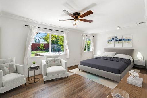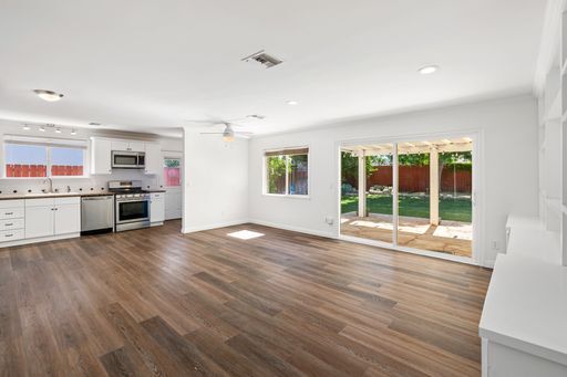 Beautiful Single Family home located in a Prime West Hills location with easy access to schools, shopping & freeway, Open Concept with Great Room Living! Spacious Kitchen & Family Room flow together for easy living. Waterproof vinyl plank flooring throughout. Expanded Primary Bedroom with 2 closets!. Bedroom #2 Features a walk in closet and a nook for a desk. Bedroom #3 is located away from the others adjacent to it's own bathroom! Enjoy the rear grassy yard & mature trees, including 4 fruit trees! Furnished rooms are virtually staged. AVAILABLE TO VIEW JANUARY 2, 2026. This expanded, 1,328 sq. ft. single story home on an over 7,400 sq. ft. lot, features 3 bedrooms + 2 bathrooms and provides plenty of space to enjoy inside and out. Enjoy the rear grassy yard & mature trees, including 4 fruit trees and test your green thumb in the garden! Greet the day on your morning walk around the treelined neighborhood or on your way to get a fresh cup of coffee!