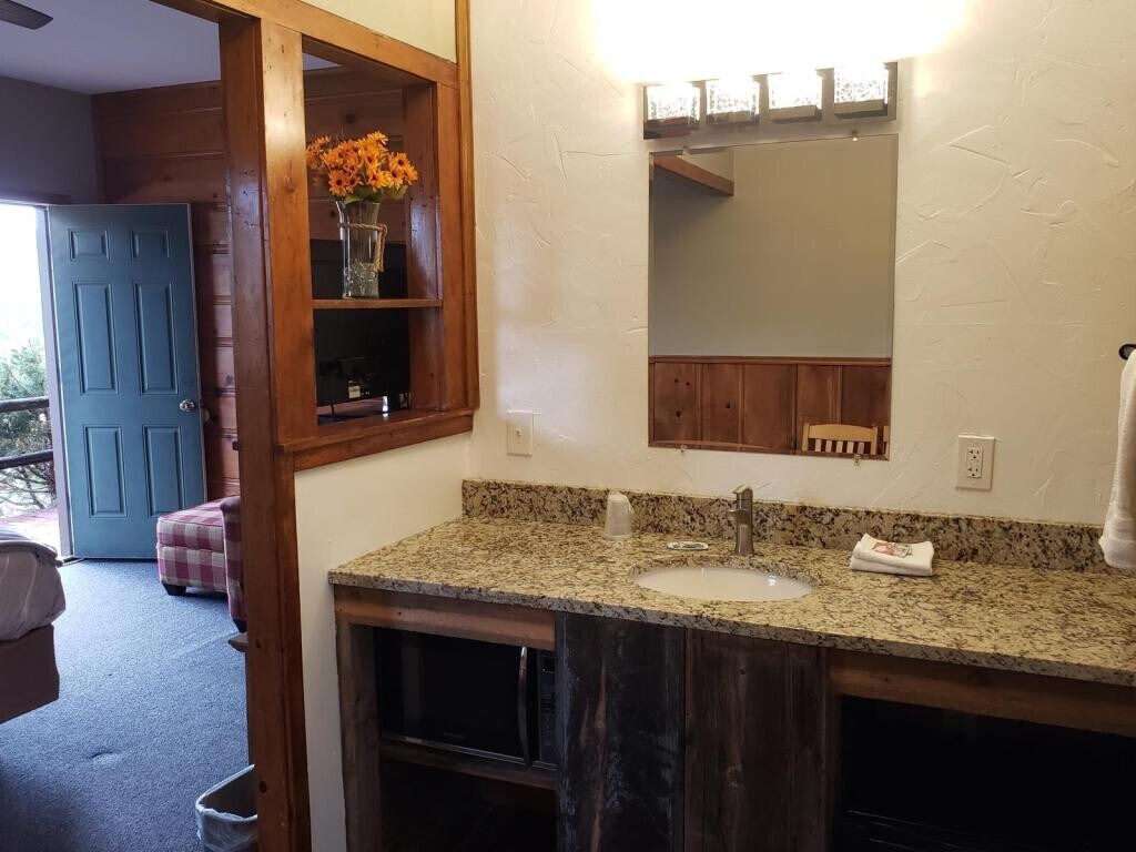 The Sundance Lodge is offering Studio Lodge rooms for extended weekly and monthly stays! Discover the perfect mountain retreat in this convenient 350 square foot studio lodge room located in the heart of Nederland, CO. With its cozy layout, this space offers a versatile room with one or two beds, making it the ideal location for anyone looking for a peaceful escape. Enjoy modern conveniences with a mini-fridge, microwave, coffee maker, and hot plate, allowing you to prepare your favorite meals and beverages with ease. Relax and unwind in the comfort of your own space, complete with beautiful views and a TV featuring premium channels for your entertainment. Step info the private bathroom, equipped with a refreshing shower, ensuring you have everything you need for a comfortable stay. The apartment is designed for convenience, providing Wi-Fi to keep you connected during your visit. Whether you're here for outdoor adventures, exploring local shops, work, or simply soaking in the stunning mountain views, this studio apartment serves as the perfect base for your activities. Located a mile from the vibrant community of Nederland, you'll have easy access to the scenic trails, breathtaking landscapes, and recreational opportunities that Nederland has to offer. Embrace the tranquility of a mountain stay while enjoying the comforts of home in this cozy studio room. Don't miss out on your chance to experience this unique getaway. Plus, we are only 18 miles from Boulder! Weekly rates start at: $500 Monthly rates start at $1350 Rates do not include tax. For additional information please call .