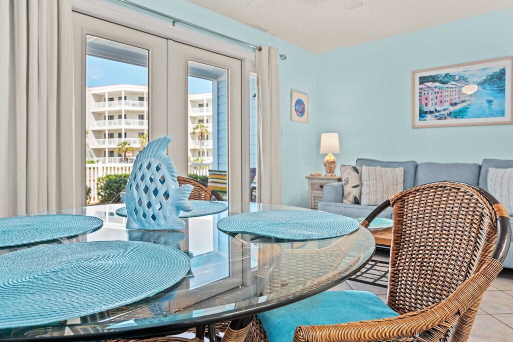 Feel at home in this 1-bedroom, 1-bath condo in the heart of Miramar Beach. This first-floor unit in a complex offers a cozy space to crash at the end of a sunshine-filled day. The beach is less than a minute's walk away. This condo features a full kitchen stocked with a fridge, dishwasher, range, microwave, dishes, cutlery, pots and pans, crock pot, blender, toaster, and griddle. Coffee drinkers can enjoy either a regular drip coffee maker or a Keurig machine. An ironing board and iron are provided. The community laundry room is available for use right outside the front door of the condo in the breezeway. Enjoy the gated complex pool (seasonally heated) and hot tub, grilling area, and a shaded patio. As a family-friendly location, a pack and play, high chair (booster seat style), and kids plastic cups, plates, bowls, and silverware are available for guest use, free of charge. Located in the Summerspell community in Miramar Beach, this apartment is close to the beach, Destin Commons, Silver Sands Outlets, locally owned restaurants and shoppes, and entertainment for the family and nightlife. There are a few restaurants within walking distance. Uber and Lyft are popular in the area for ride sharing, and SHIPT or Instacart are great for grocery delivery. Check-in time is 4 pm CST and check-out time is 10 am CST. Noise ordinances are at 10 pm sharp. Excessive noise, parties, illegal activity, or disturbances are not permitted at any time. Trailer, RV, box truck, and watercraft parking are not permitted at any time in the community. [SI]