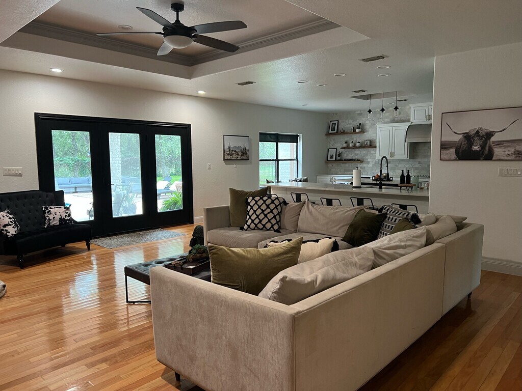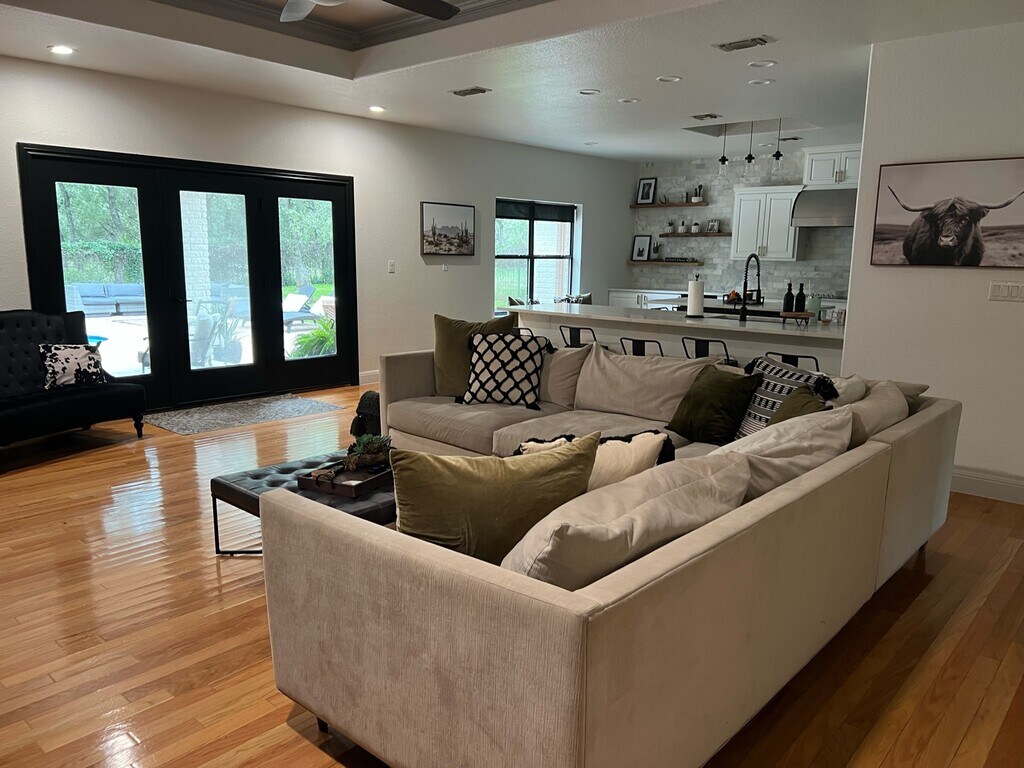 Horses welcome!! Experience a touch of luxury living in gated and private 4 acre park like setting with a pool, 2 huge covered porches and horse facilities located in Garden Ridge Texas walking distance to the new Davenport High School. Country living close to the city. The house is an expansive 3600 sq ft.. Gleaming hardwood floors extend a warm welcome throughout. Indulge your culinary senses in the charm of a brand-new kitchen, seamlessly blending style and functionality. The allure continues with a versatile 3-room loft, featuring a wet bar for entertaining or effortlessly transforming into a 5th bedroom. Beyond convenience and sophistication, discover the equestrian enthusiast's dream on this property. Spacious horse facilities beckon, boasting two spacious horse stalls, a lush pasture, and an oak-shaded arena adorned with beach sand. Your equine companions will thrive in this serene setting. Enjoy the additional perks of 2 car garage parking, built in bbq, the resilience of a metal roof, and the cost savings of no water bills – all thanks to the property's reliable well. Step outside to embrace the vast landscape, complete with a refreshing pool. Welcome to a quiet lifestyle of unparalleled comfort, close to everything yet far enough from it all. Horses, Cats, Dogs welcome. This property may be negotiable for a shorter term depending upon applicants situation. Please note that there is a 2bd, 1 bth guest house on the property on a separate electric meter that operates as a STR. This can be negotiated into the lease for an additional fee. There is currently a long term Tennant in the property until the end of April. They have been there for almost 2 years. Any showings will require advanced scheduling.