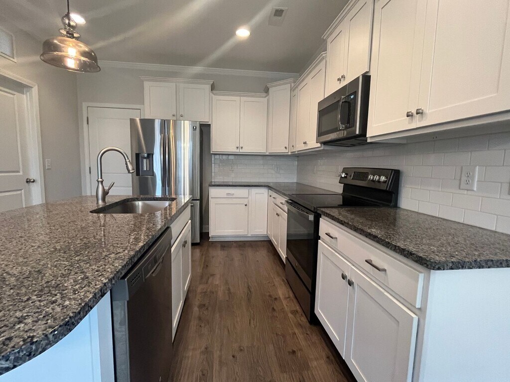 Beautiful open-concept home featuring wood floors throughout the main living area and an open-concept layout. The kitchen is well-appointed with stainless steel appliances, granite countertops, and a large island. The primary suite, conveniently located on the main, includes a dual vanity, soaking garden tub, separate shower, and a generously sized closet with storage shelves. A large laundry room comes equipped with a washer and dryer. Enjoy the covered back patio with an outdoor fan, overlooking a large backyard. Additional Features: 4 bedrooms | 2 full bathrooms | 1 half bathroom 2,359 sq ft of living space Gas fireplace in the living room Carpeted bedrooms for comfort 2-car garage with driveway parking Central A/C Gas water heater Electric furnace Requirements: A 650 credit score and income of three times the monthly rent are required. Pets are welcome with owner approval, refundable pet deposit, and $35.00 monthly pet fee. Section 8 Vouchers are not accepted. Utilities and renter's insurance are tenant responsibility. Managed by Acorn + Oak Triad Property Management, interested parties may contact Jordan for additional details. All showings are scheduled electronically; please do not call.