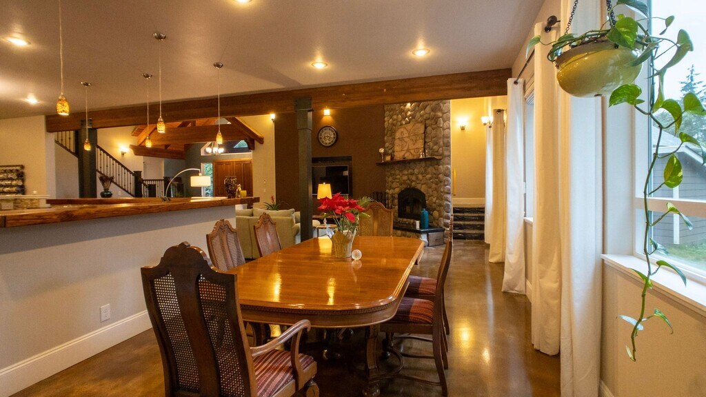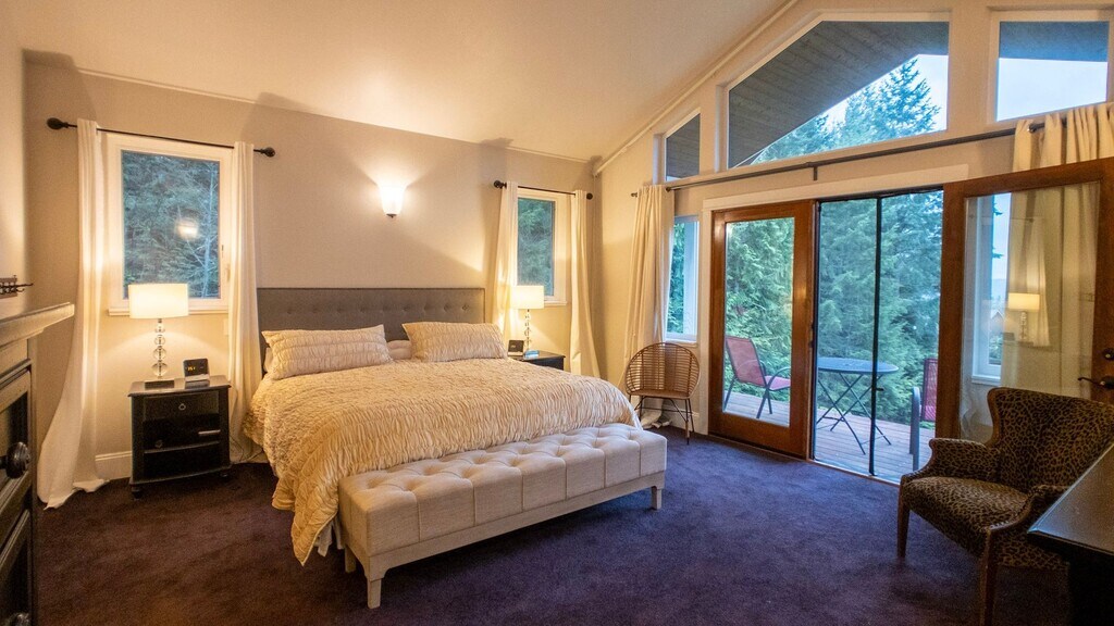 The pictures tell the story of this gorgeous and dramatic custom home. Completely open main floor with stained concrete floor and a 2 story stone fireplace, huge open chefs kitchen with seamless access to the large covered patio and expansive deck. There are two large main floor bonus rooms and 3/4 bath for easy guest space or the perfect home office setting. Upstairs is a grand master bedroom with westerly views, private deck, sitting area and a luxurious en suite with a private sauna. Call for a private tour Bobbi Neal