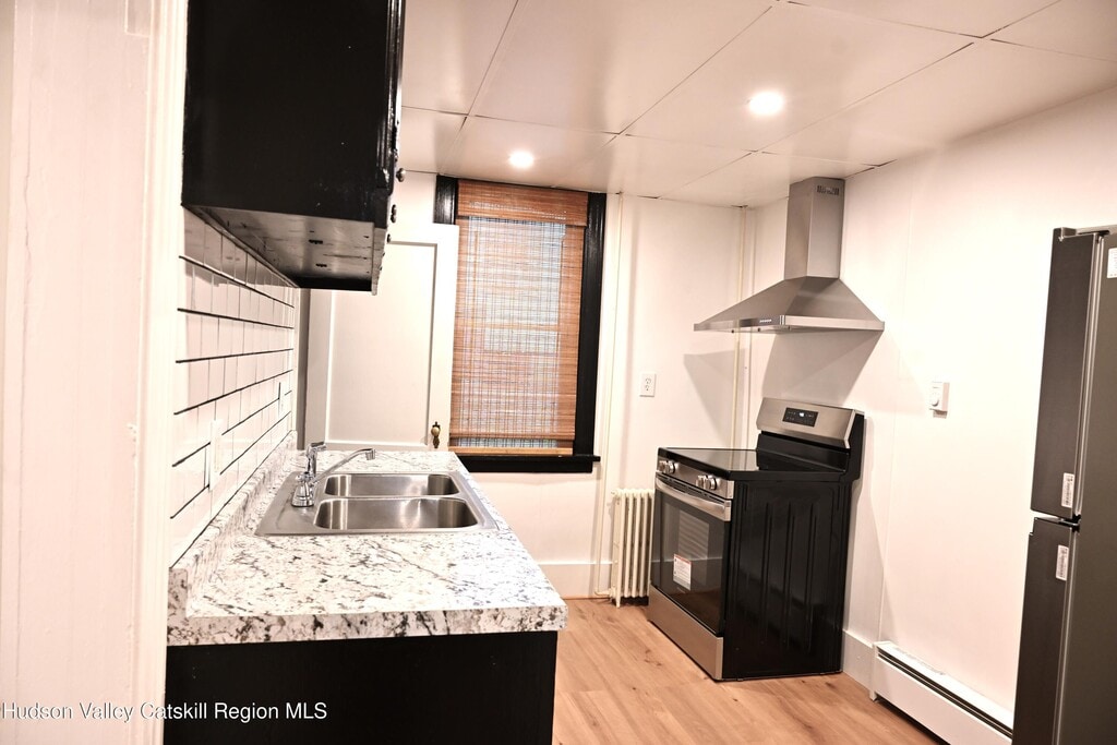 Charming and freshly updated 1-bedroom garden apartment located just minutes from Kingston's vibrant Rondout district. Enjoy modern updates,new appliances,and a peaceful shared backyard space. This cozy unit offers off-street parking and includes WiFi,water,and trash removal in the rent. Ideal for a quiet tenant looking for a convenient location with easy access to the waterfront and local amenities.