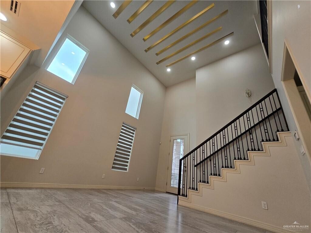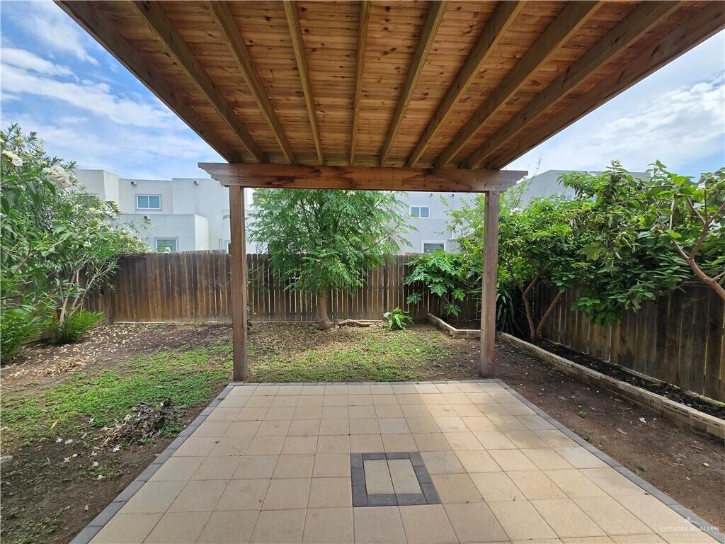 Beautiful luxury town home in a gated community within Sharyland ISD. Conveniently located on Shary Rd.,minutes away from shopping,restaurants,and expressway! Features include,extra high ceilings in living area,an open concept layout,quartz countertops,spacious kitchen island,bonus living area on 2nd floor,tile floors throughout,and split bedrooms with master bedroom being downstairs. The backyard is fenced and has a cute pergola over the patio perfect for relaxing and entertaining. Ready to move in,equipped with Stove,Refrigerator,Microwave,Washer and Dryer. Sprinkles,in front and backyard. Yard maintenance included.