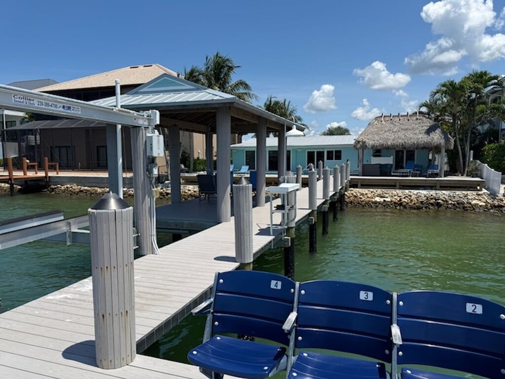 Welcome to the "Home on Isle of Capri", a stunning 3-bedroom, 3-bathroom residence located in the heart of Naples, FL. This home offers a unique blend of comfort and luxury, with a boat dock right at your doorstep. The location is unbeatable, with close proximity to a variety of restaurants and shopping destinations, as well as the vibrant Naples and Marco Island. The home's outdoor space is a true highlight, featuring a pool and hot tub on the river, perfect for relaxation and entertainment. Imagine sitting on your lanai, soaking in the breathtaking beach views and watching the sun set over the horizon. This home truly offers a slice of paradise.