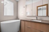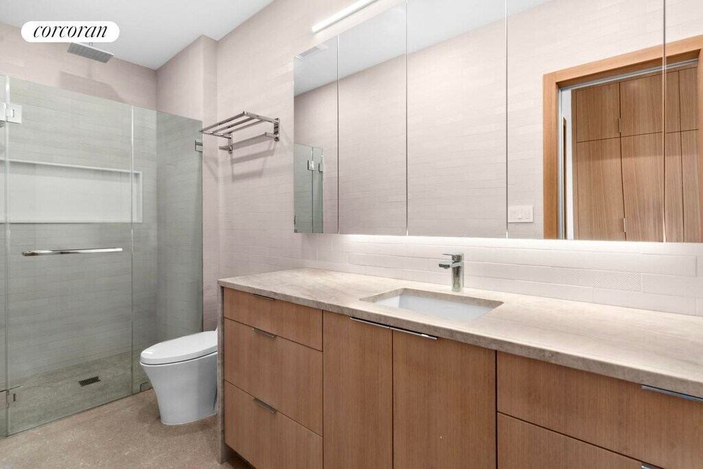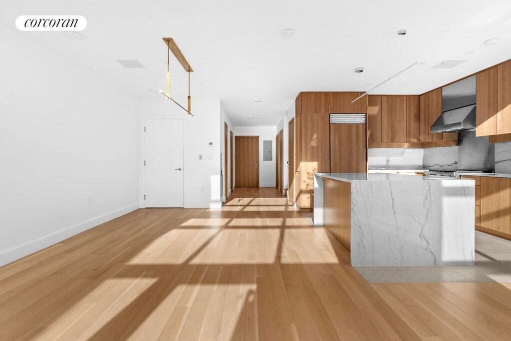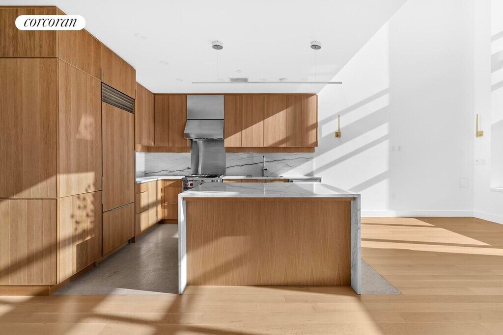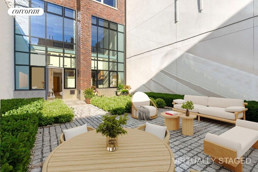 A Rare Williamsburg Trophy Rental with Private Garden Welcome to 24 Frost Street, an exceptional, newly constructed three-bedroom, three-bathroom boutique condominium residence offering the privacy and scale of a townhouse with the refinement of a bespoke luxury home. With just two residences in the building, this property delivers an unmatched level of discretion, architectural distinction, and elevated living.Spanning two expansive floors, the home is anchored by a dramatic two-story living room with soaring 20-foot ceilings, a striking glass curtainwall, and large dual-action tilt-and-turn windows that flood the space with natural light. Motorized blinds throughout provide effortless light control and privacy. The expansive living area is thoughtfully designed to comfortably accommodate a full-scale dining table for 8-10 guests, making it ideal for entertaining, intimate dinner parties, and holiday gatherings. A gas fireplace with a limestone hearth adds warmth and sophistication, while layered lighting by Sonneman and Visual Comfort enhances the architectural drama.The chef's kitchen is a true centerpiece, featuring custom rift-sawn oak cabinetry, custom marble countertops, limestone flooring, and a premium appliance suite including a Sub-Zero refrigerator, Sub-Zero wine refrigerator, Wolf gas range with hood, Wolf microwave drawer, and Cove dishwasher. Every detail has been carefully selected to balance refined aesthetics with professional-grade performance.Seamlessly extending from the living area is a fully landscaped private garden designed by Hilary Finn, complete with ashlar and cobblestone patios. This serene outdoor oasis creates a rare indoor-outdoor living experience, ideal for entertaining or quiet retreat.The home offers exceptional bedroom separation and flexibility. The ground floor features a spacious bedroom with a custom built-in rift-sawn oak armoire, additional closets, and a beautifully appointed full bathroom with a glass-enclosed shower and Kohler fixtures. A dedicated laundry room includes a full-size Samsung washer and dryer.Upstairs, the primary suite is a true sanctuary, featuring generous custom storage, ceiling fan, and a spa-like en-suite bath with a glass-enclosed shower, Kohler fixtures, and radiant heated floors. The third bedroom is a stunning convertible space ideal as a guest suite, executive office, or wellness studio. Sliding architectural walls allow natural light to cascade from the living room's double-height windows, while the en-suite bathroom features a deep Japanese-style soaking tub by Badeloft.Throughout the residence, thoughtful details abound, including quarter-sawn oak flooring, radiant floor heating by Warmboard, central air conditioning and heating, layered architectural lighting, custom millwork, additional private storage, ceiling fans in all bedrooms, and advanced home infrastructure with video intercom, private remote access, and internet and media connections by Volant AV.Ideally located just moments from the L train and McCarren Park, this quiet Williamsburg enclave offers effortless access to Manhattan while remaining removed from the neighborhood's busiest corridors.This is a rare opportunity to secure a truly one-of-a-kind Williamsburg residence at the highest level of luxury.Private showings by appointment only.