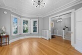 Rare Victorian Single Family Rental in Prospect Hill,Somerville. This 5 Bedroom 2 Bathroom house has been recently renovated to also incorporate timeless features like stain glass windows,pocket french doors,tin ceilings,crown moulding,ornate fireplace mantles and intricate flooring. Modern updates include,recessed lights,central cooling/heating,solar panels,designer cabinets,stainless steel appliances,tiled bathrooms,2nd floor roof deck,sun room that opens to a patio. This home was owner occupied and newly offered as a rental. Classic Colonial setup with living,dining,kitchen on first floor,with bathroom,3 bedrooms and another bathroom on the 2nd floor and then 2 more bedrooms on the third. Basement is unfinished,laundry is on the main level. MLS# 73441723