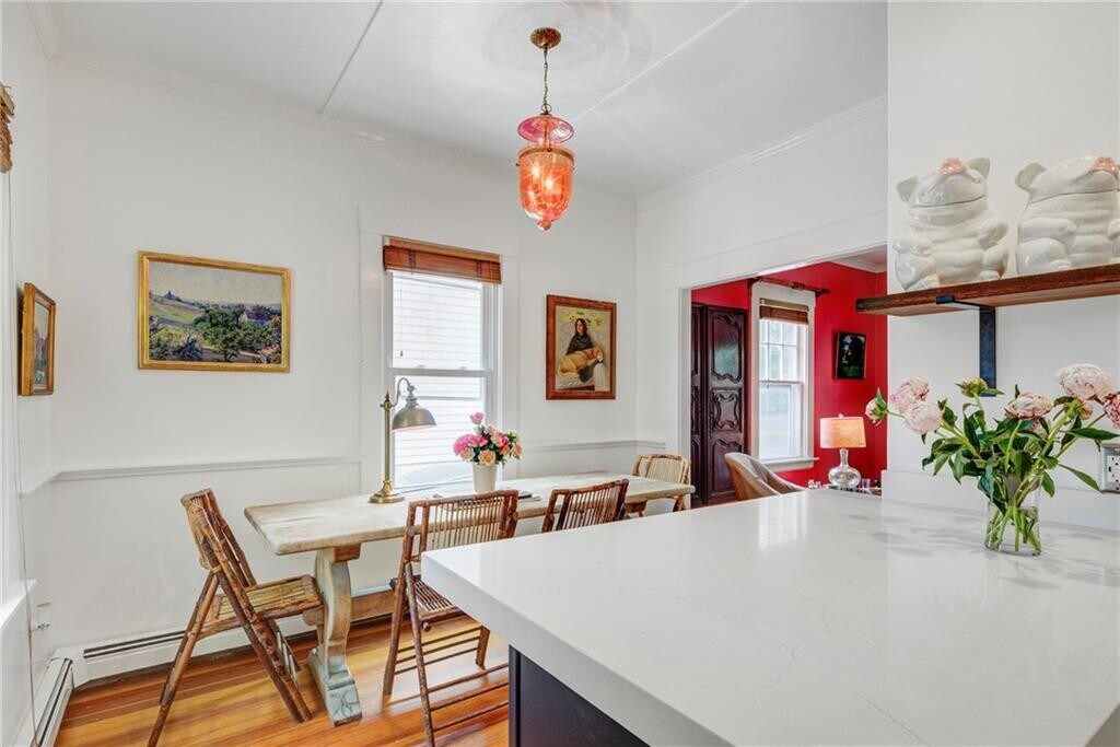 This chic coastal cottage is the perfect blend of comfort,style,and ease. Thoughtfully designed with plush furnishings and eclectic touches,it offers a warm,inviting atmosphere for those seeking a refined yet relaxed Newport escape. The spacious first-floor primary suite makes this home ideal for a couple or a solo traveler looking to unwind. Upstairs,a generous guest space awaits visiting friends or family—perfect for quiet weekends or festive gatherings. Located just moments from Easton’s Beach,the Brick Market,and Newport’s most lively spots,the property still feels worlds away from the rush of downtown. Whether you’re lounging with a book and a breeze or entertaining in style,this home is designed for comfort and calm. Available now through the end of May. Come spend the fall and winter nestled in Newport’s charm. Dog-friendly,too!