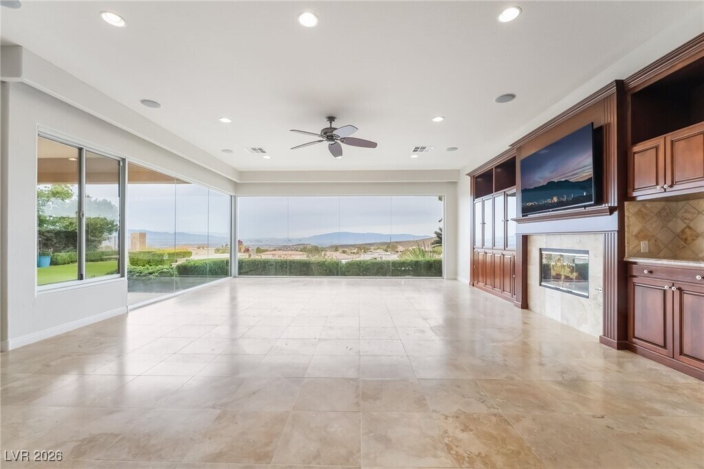 Elevated architecture & breathtaking views of the Las Vegas Strip, rolling mountains & pristine golf course define this exceptional Anthem Country Club home. A dramatic stone frontage, paver-lined drive & bespoke iron entry open to highlighted by travertine flooring & expansive glass that showcases the surrounding landscape. The versatile layout offers four bedrooms along with a dedicated executive office, while the culinary kitchen is outfitted w/Viking appliances, an oversized island, walkin pantry & coffee bar, flowing effortlessly into the family room anchored by a custom media feature. The primary retreat opens thru French doors to a covered patio with a built-in outdoor kitchen, perfect for entertaining or unwinding & additional bedrooms provide both en-suite & dual access arrangements. Outside, manicured grounds frame a resort-inspired infinity pool & spa with Pebble Tec finish, positioned to enjoy one of the community’s most desirable unobstructed outlooks.