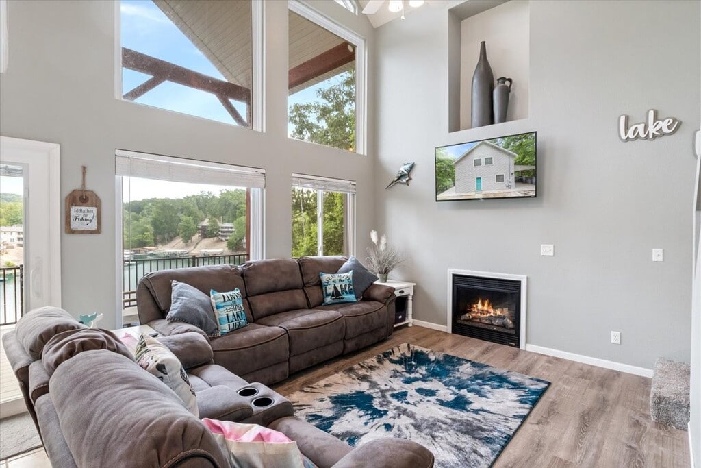 Available for 3 to 6 month midterm lease ONLY, this beautifully furnished lakefront home offers the perfect balance of comfort, convenience, and style. With three bedrooms, multiple living areas, high-speed internet, and a fully equipped kitchen, it's designed for extended stays—whether you're relocating, on assignment, or simply seeking a long-term lakeside retreat. Relax on the screened-in patio, take in serene views from the balcony, or grill out on the side terrace. A private dock with 12x28 slip provides direct lake access in a quiet cove, while restaurants, marinas, and entertainment are just minutes away on HH and Hwy 54. This property isn't just a rental—it's a place to call home while you settle into life at the Lake of the Ozarks. The Space Lakeview • Lake Access • 4MM on Main Channel Bedroom 1: 1 King Bedroom 2: 1 Queen Bedroom 3 (Loft): Triple Single Bunk Kitchen: Fully equipped with modern appliances and all the essentials—microwave, stove, oven, refrigerator, toaster, and coffee maker. Perfect for daily cooking during your stay. Indoor Living: Smart TV with free WiFi (streaming apps available), lower-level living area with arcade games and mini fridge, and plenty of space to relax or work from home. Outdoor Living: Enjoy multiple outdoor spaces including a screened-in patio, open-air balcony with string lights, side patio with grill, and a private dock with a 12x28 slip. Parking: Driveway accommodates up to 3 vehicles, with an additional space at the top of the drive. General: High-speed internet, washer and dryer, central A/C and heating, towels and linens, complimentary toiletries, hairdryer, iron and board, and starter paper products provided. Lease Terms Midterm leases only: 3–6 month minimum No smoking, no pets, and no parties permitted Security cameras in parking area and Ring Doorbell Neighborhood Located in a quiet cove with easy lake access, perfect for relaxing, swimming, and fishing off your private dock. Nearby amenities include Village Marina and Boat House. Just minutes away are local favorites such as Neon Taco, Tap & Grill, DockKnockers, Lake Burger, Shady Gators, and Camden on the Lake. Getting Around Quick access to Hwy 54 for easy commuting to surrounding areas. Minimum Requirements To Rent with Salisbury Property Management Application fee is $25 Admin Fee $35 No prior evictions Minimum Credit Score of 600 Income must be 3 times the rent Good references from past landlords Pass a background check Must be a non-smoker No Pets Employment Verification All person's over the age of 18 that is not a dependent must pass these requirements. First, Last, and Deposit Required for all leases