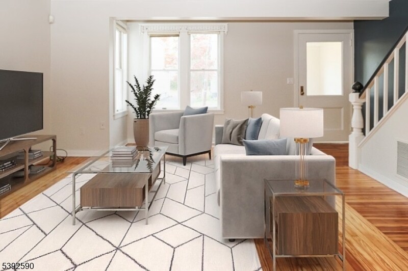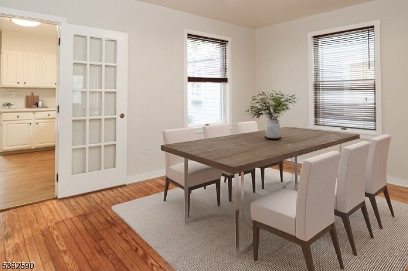 Enjoy the ultimate in Montclair living with this unique multi-level 1/2 duplex. Located in the heart of downtown Montclair, just blocks away from dining, shopping, farmers market, buses and NYC trains. Inside, the first floor features a vestibule, living and dining rooms, powder room and a modern galley kitchen with quartz countertops , stainless steel appliances and laminate floor. On the second floor you'll find two bedrooms, each with ample closet space. An oversized bathroom with storage closets completes the second floor. Beautiful wood floors, recessed lighting and designer light fixtures add style throughout. Exit the kitchen to a private rear deck overlooking the serene and meticulously landscaped backyard - perfect for relaxing or entertaining. Central air and heat. The basement is finished and includes a laundry area complete with washer/dryer and walkout to backyard. Detached garage with 1 assigned parking space.