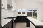 Modern Home in Prime Location! This stylish,move-in-ready 3-bedroom,2.5-bathroom home offers contemporary living with thoughtful design throughout. The open-concept layout features a sleek kitchen with two-tone cabinetry,gold hardware,and includes an electric stove/range,washer,and dryer. High ceilings and large windows create a bright,airy feel,while the spacious upstairs primary suite provides a private retreat complete with balcony access. Enjoy a fully fenced backyard with a pergola,perfect for outdoor relaxation or entertaining. Located just minutes from the expressway,with convenient access to shopping,dining,and entertainment. Don’t miss the opportunity to live in this modern home in a highly desirable area,schedule your showing today!
