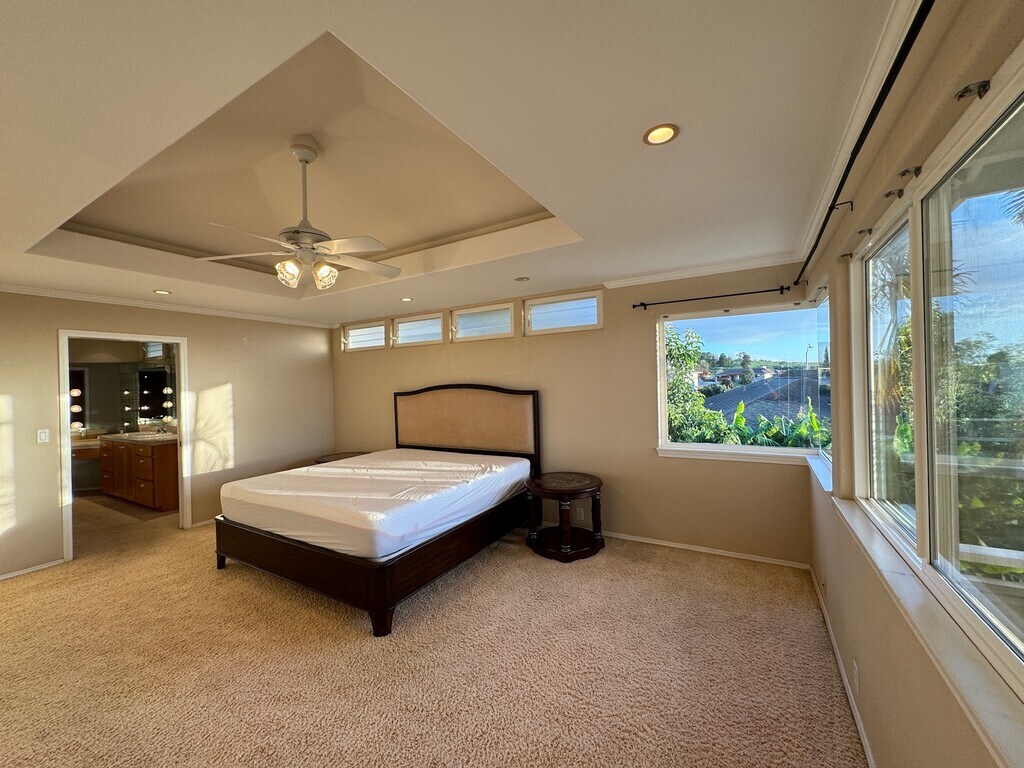 Executive 2-Bedroom, 2-Bath Home with Panoramic Views Kula, Maui Escape to luxury island living in this executive-style upper-level attached home nestled in the serene hills of Kula. This elegant retreat features a beautifully landscaped private yard with a peaceful waterfall feature, along with a 270-degree wrap-around lanai offering breathtaking bi-coastal and sunset views. Inside, the open-concept living, dining, and kitchen area is bright and inviting, with travertine tile flooring throughout. The modern kitchen boasts a gas stove, brand-new stainless-steel appliances, and generous storage perfect for cooking and entertaining. This home is unfurnished, though a bed is included in the master bedroom for added convenience. Both spacious bedrooms include their own ensuite bathrooms, providing comfort and privacy. Step onto the lanai to enjoy your morning coffee or evening wine while overlooking fruit trees and tropical gardens. Additional conveniences include a two-car garage, in-unit laundry, and extra driveway parking. Located on a quiet cul-de-sac in an upscale neighborhood, this home offers tranquility while remaining just a short drive from Kahului's shopping, dining, and outdoor recreation.
