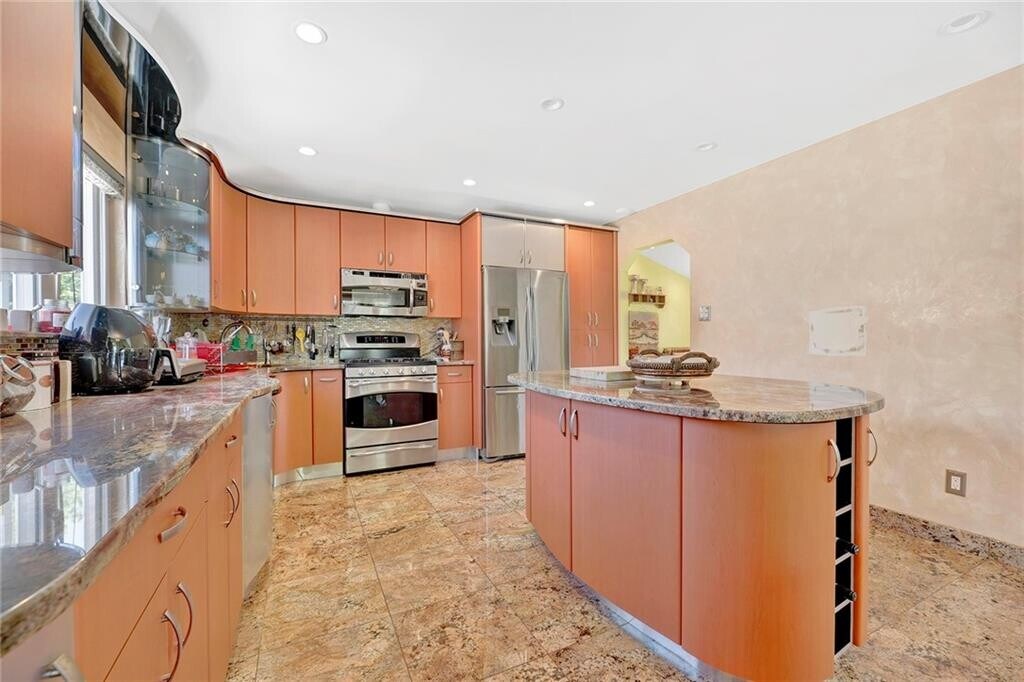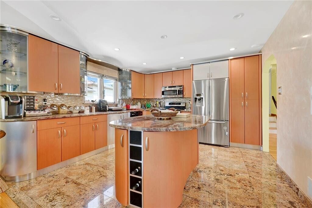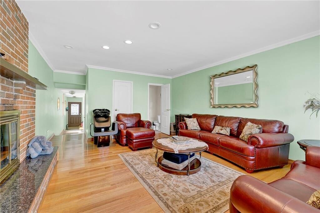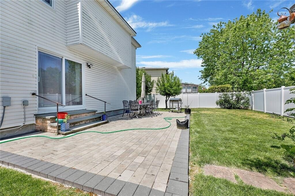Presenting this exceptional detached duplex for rent, ideally situated on a beautiful and tranquil cul-de-sac in quaint Staten Island. This gorgeous split-level residence offers three generously sized bedrooms and two and a half well-appointed baths, highlighted by a spacious primary suite with its own full bath. The expansive living room features elegant high-hat lighting and flows seamlessly over glistening hardwood floors into a formal dining area, open to a custom eat-in kitchen complete with a granite center island and stainless steel appliances. A warm and inviting family room showcases a wood-burning fireplace and sliding glass doors leading to a huge, private rear yard—perfect for relaxation or entertaining, with access to the laundry room. Completing this impressive home is a two-car private driveway, with heat and water conveniently included in the rent, creating an ideal blend of comfort, functionality, and refined suburban living.