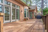 This classic brick single-story home is beautifully situated on the 14th hole of the Holly Course at Pinewild Country Club, offering peaceful golf course views and a timeless Pinehurst setting. The home features three bedrooms and two bathrooms with a desirable split floor plan that provides both comfort and privacy. Inside, the layout offers two separate living spaces, perfect for flexible living, entertaining, or creating a dedicated media or sitting room. Large rear windows line the back of the home, filling the living areas with natural light and showcasing scenic views of the course. Outdoor living is a highlight, with a screened-in back porch and an additional back deck—ideal for relaxing or entertaining while enjoying the fairway views. The home also includes a two-car garage and a large laundry/mud room, adding everyday convenience and excellent storage. Located in the sought-after Pinewild community, this home offers easy, single-level living with a prime golf course backdrop and is available now for immediate move-in.