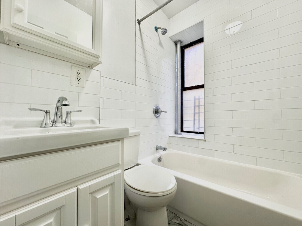 Inwood/ Thayer St-- Gut renovated 2 bedroom apartment. Laundry in unit. Both bedrooms have closets. Bedroom 1 is larger than the second bedroom but both have plenty of space for all your furniture needs. Both bedrooms have windows and closets. Granite kitchen with stainless steel appliances and microwave. Electric stove. Plenty of cabinet space. White-tiled bathroom with a full shower. Easy access walk up building with this 2 bedroom on the 4th floor. On-site attentive Super and great management company. The building is located near the A or 1-trains, Broadway buses, Fort Tryon Park, Supermarkets and restaurants for every taste. Sovereign Associates Inc.