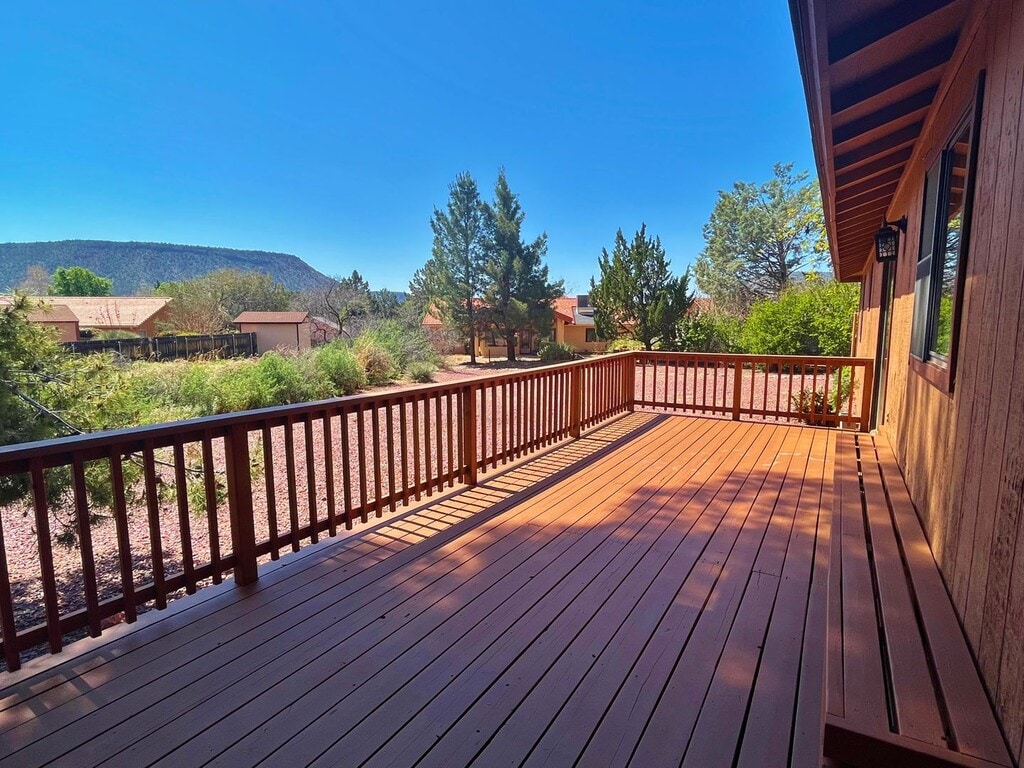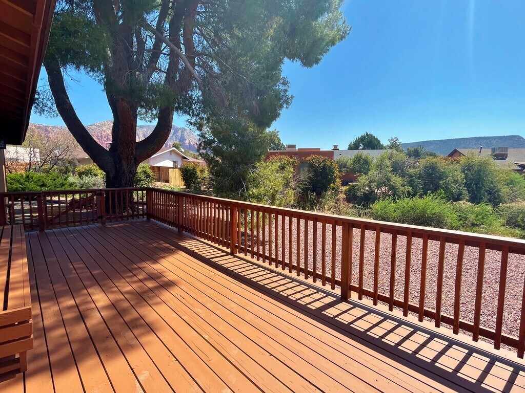 *SPECIAL $500 OFF FIRST MONTHS RENT* BEAUTIFULLY UPDATED HOME TUCKED IN A NICE LOCATION IN THE VILLAGE OF OAK CREEK AREA OF SEDONA. LIGHT AND BRIGHT WITH A SENSE OF PRIVACY AND REDROCK VIEWS FROM THE LARGE REAR DECK. HIGH END WOOD INSPIRED PLANK FLOORING THROUGHOUT. LARGE LIVING ROOM WITH HIGH END ELECTRIC FIREPLACE INSERT THAT IS EFFICIENT AND OFFERS GREAT HEAT OUTPUT FOR THOSE CHILLY NIGHTS. MODERN KITCHEN WITH ALL NEW APPLIANCES, INCLUDING A DOUBLE OVEN RANGE, BREAKFAST BAR AND DINING AREA. THREE NICE BEDROOMS, MASTER WITH EN-SUITE AND A DOUBLE CLOSET. LAUNDRY ROOM WITH BRAND NEW FULL SIZE APPLIANCES. TWO CAR GARAGE. ONE DOG MAY BE NEGOTIABLE. PLEASE CALL TO SCHEDULE AN AGENT SHOWING,