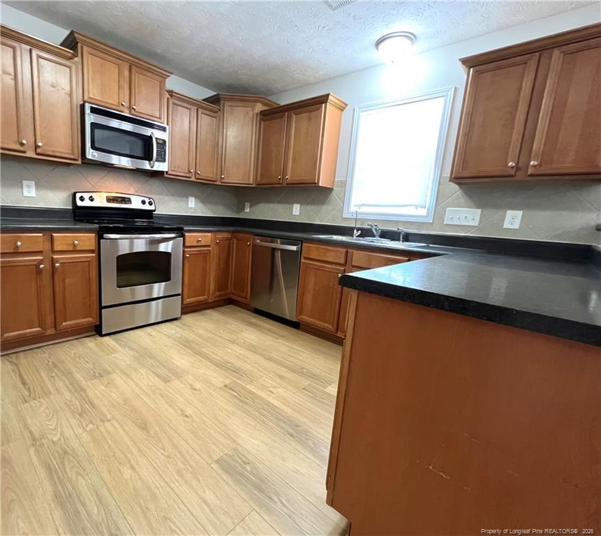 Welcome to this stunning four-bedroom, 2.5-bath home in Liberty Chase, perfect for modern living. The open concept design seamlessly connects the living room and kitchen, making it ideal for entertaining. A dedicated office space is conveniently located downstairs, while an inviting loft upstairs adds versatility to the layout. All four bedrooms are situated on the upper level, featuring plush new carpet for added comfort. The master suite includes a luxurious bathroom with a garden tub and a separate shower for a spa-like experience. Enjoy the privacy of a fenced yard, perfect for pets and outdoor activities. Located in Raeford, this home offers a short drive to Moore County and Fort Bragg, making commuting a breeze. Experience the perfect blend of style, space, and convenience in this lovely property!