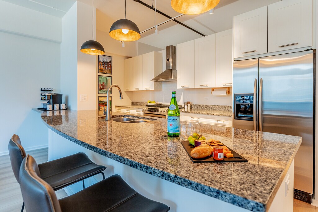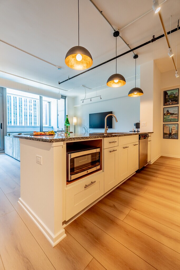Fully furnished,spacious and updated South facing loft in the incredibly walkable Streeterville neighborhood. This bright and spacious residence features 10' ceilings,floor-to-ceiling windows,and an 18 x 5 ft terrace with spectacular high-rise city views. Professionally furnished with curated high end retail brands,fresh paint,California Closets,new flooring,and new bath fixtures. The fully equipped kitchen boasts ample cabinetry,stainless steel appliances,a gas range,and an expansive granite island. The generous bedroom includes a king bed and a custom walk-in closet. Additional highlights include California Closets throughout,an in-unit washer/dryer,and a dedicated office niche. An exterior storage cage is included in the attached garage. Amenities include a cardio room,weight room,rooftop pool with deck & community grills,movie/media theater,bike room,dog run,party room with catering kitchen,dry cleaner on site,business center,24-hour doorman & security. On site building management. Assessments include: All listed amenities plus heat,air,gas,water,cable,internet,trash,landscaping & snow removal. Minimum 1 year lease. MLS# MRD12586933 Based on information submitted to the MLS GRID as of [see last changed date above]. All data is obtained from various sources and may not have been verified by broker or MLS GRID. Supplied Open House Information is subject to change without notice. All information should be independently reviewed and verified for accuracy. Properties may or may not be listed by the office/agent presenting the information. Some IDX listings have been excluded from this website. Prices displayed on all Sold listings are the Last Known Listing Price and may not be the actual selling price.