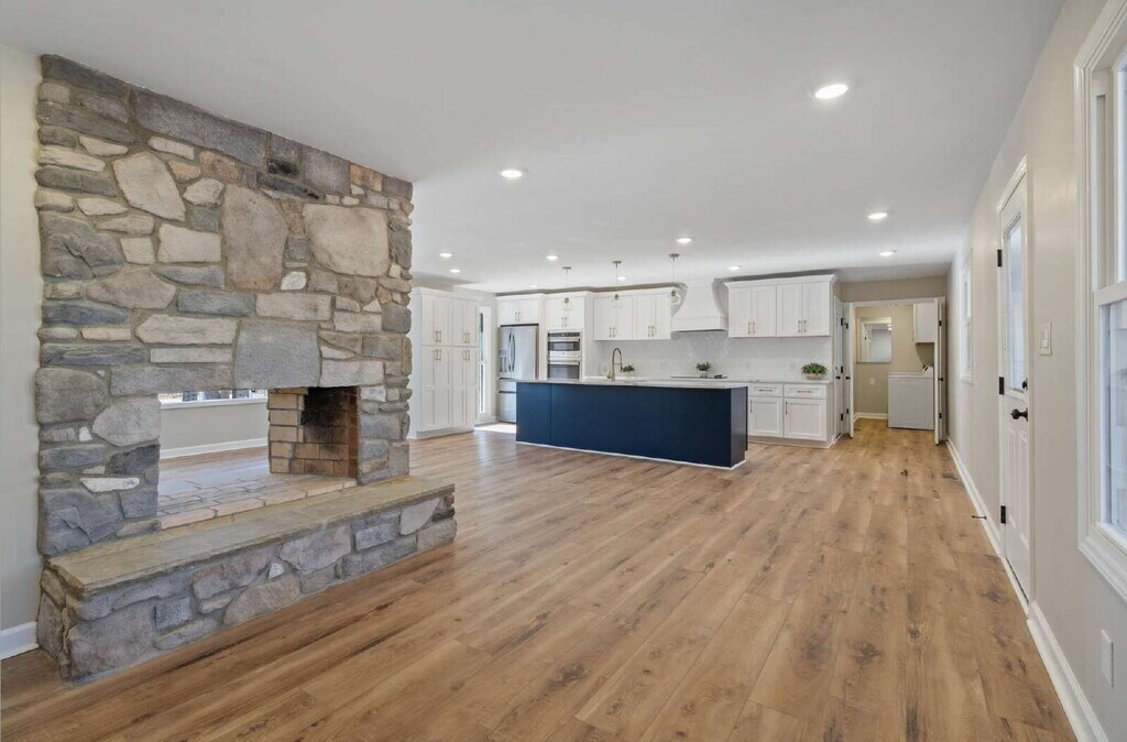 Featuring a picturesque setting, 240 Forestwood Park Rd in Sanford, NC, is a charming haven that promises comfort and tranquility. This tastefully renovated 3-bedroom, 2-bathroom ranch home spans 1,475 square feet, offering ample space for relaxation and entertainment. As you step inside, you'll be greeted by a delightful atmosphere and gorgeous luxury vinyl plank flooring that seamlessly blends style and functionality. The open floor plan centered around a dual-sided stone fireplace creates a spacious ambiance, perfect for both quiet evenings and lively gatherings. The chef-inspired kitchen features a farm house sink, stainless steel appliances, quartz countertops, ample storage, and an oversized island. Walk down the hallway to the three bedrooms that are designed with comfort in mind, providing a serene retreat at the end of the day. The full bathrooms are elegantly appointed ensuring a refreshing start to your mornings. With two covered oversized porches, a large open back deck, situated on over an acre lot, and surrounded by nature's beauty, this home offers the perfect balance of privacy, tranquility, and an ideal spot for those who cherish outdoor adventures and peaceful strolls. With its prime location, captivating charm, and thoughtful design, 240 Forestwood Park Rd is a delightful place to call home. Discover the perfect blend of comfort and convenience in this Sanford gem, ready to welcome you. Tenant responsible for all utilities and lawn maintenance. No smoking of any kind on property. Washer/Dryer provided in laundry room. Renters insurance required. One dog or cat accepted with monthly pet rent. Application requirements: income 3x the month's rent, clean credit history over 595+, and clean rental history