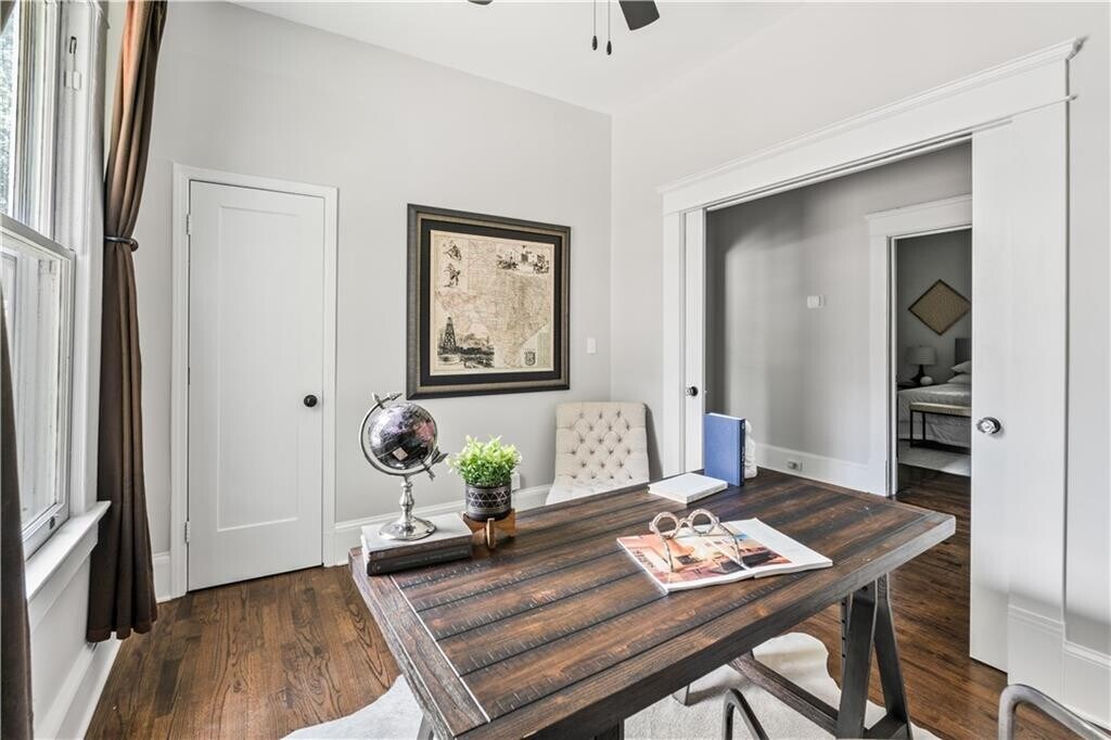 Charming,storybook City of Decatur bungalow in sought after,centrally located,Lenox Place neighborhood. Don't miss this 1915 beauty that marries period character with today's amenities. Enter the huge,screen porch through the enchanting and inviting double doors to beautiful hardwood floors,soaring ceilings,swinging doors,decorative fireplaces,stained glass and period elements throughout. This three bedroom,two bathroom home features a very flexible floorplan on a particularly wide,Lenox Place lot; 64.7+ feet wide! Well-apportioned kitchen opens to large dining room and accesses the back patio - perfect for entertaining. The fenced backyard is an outstanding play/entertaining area with recently-added iron fence and a shed for storing the outdoor supplies. Of course,this home is zoned for coveted City of Decatur Schools and is centrally located between Downtown Decatur,Oakhurst,Druid Hills and Lake Claire. This home exemplifies the best of intown living. Fantastico!