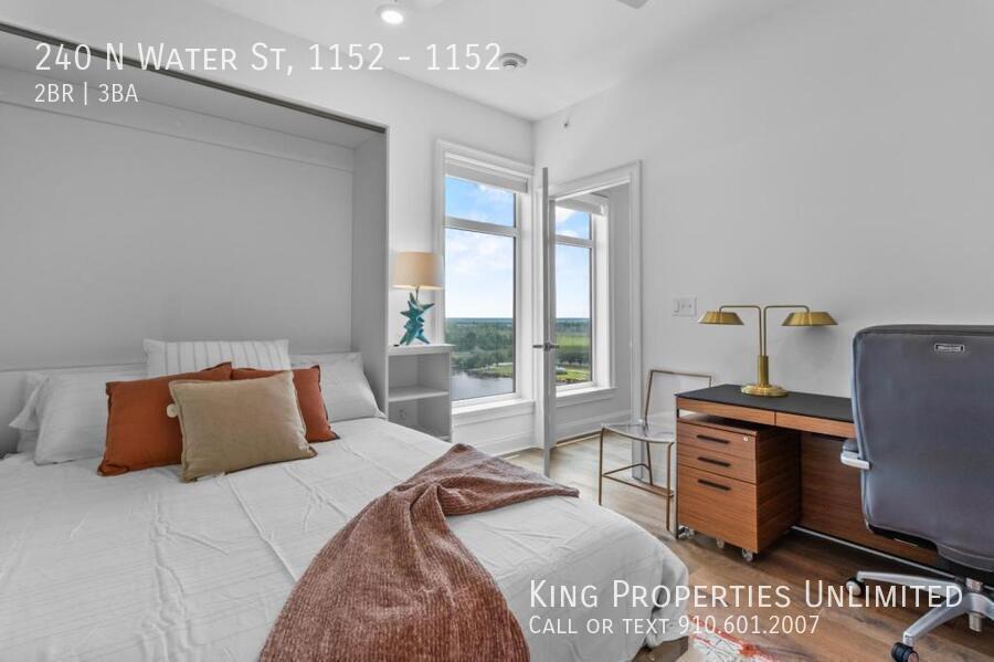 BREATHTAKING VIEWS in this fully furnished, 2 Br / 2.5 Ba Condominium at River Place. Located on the 11th floor, this condominium overlooks the Cape Fear River. With numerous windows and an oversized balcony, this home offers a spectacular panoramic view of Wilmington's finest, including the USS NC Battleship and Cape Fear River Bridge. With direct access to the riverwalk, this home is in walking distance to the marina, local favorite restaurants, and a concert venue. River Place is truly a luxury complex, with secured entries and a staffed front lobby. It boasts amenities such as a roof top pool, fitness center, pet spa, and club room. The layout is perfect for entertaining guests, with its open concept kitchen, dining and living areas. The master bedroom, with its queen size bed is isolated to the back of the home offering peace and tranquility, and a gorgeous view of the river. The second bedroom is a home-office, but doubles as a spare bedroom with the built-in queen size murphy bed. This home has everything you need with its upscale finishes and luxurious furnishings. Stay in and experience the amazing sunsets or venture out to enjoy the downtown lifestyle. Additionally, this condo includes the convenience of 2 parking spaces in the adjoining parking garage and an on-site storage closet. Showings by appointment only. AVAILABLE: January 1, 2026 TERM: Min 6 months UTILITIES: Tenant responsible for electricity and internet PET RESTRICTIONS: Pets negotiable, max 2 dogs total weight 100lbs, see fees QUALIFICATIONS & REQUIREMENTS: - Absolutely NO Smoking, Vaping or E-Cigs. - Application Fee $30 per adult. - Proof of income required. - Subject to background search. - Security Deposit is one month's rent. - One time non-refundable pet fee of $600 per pet. Year Built: 2020 Rental Assistance: No Fifty-five plus: No Multiplex: No