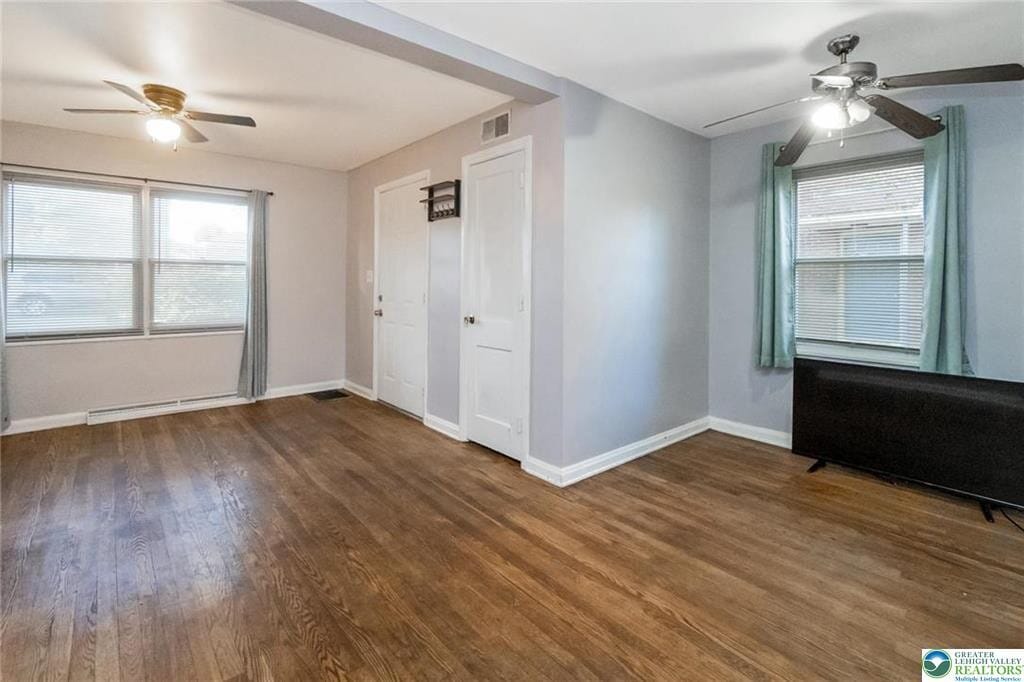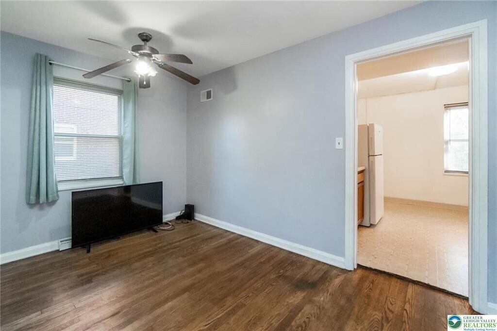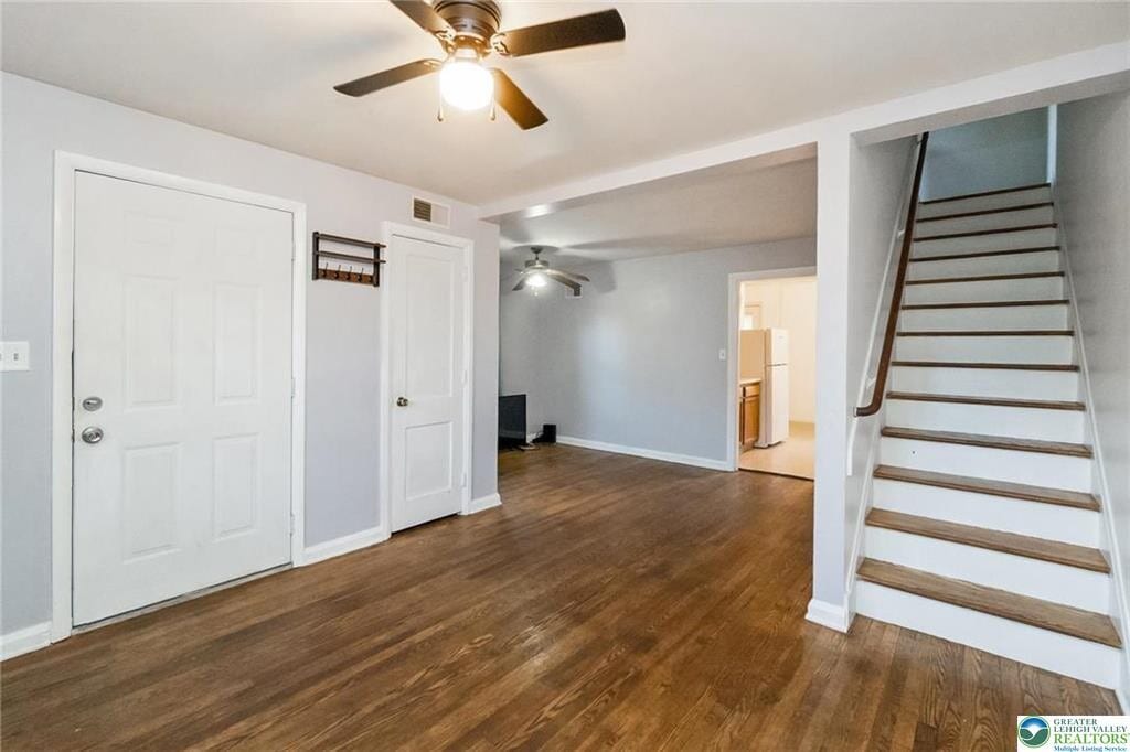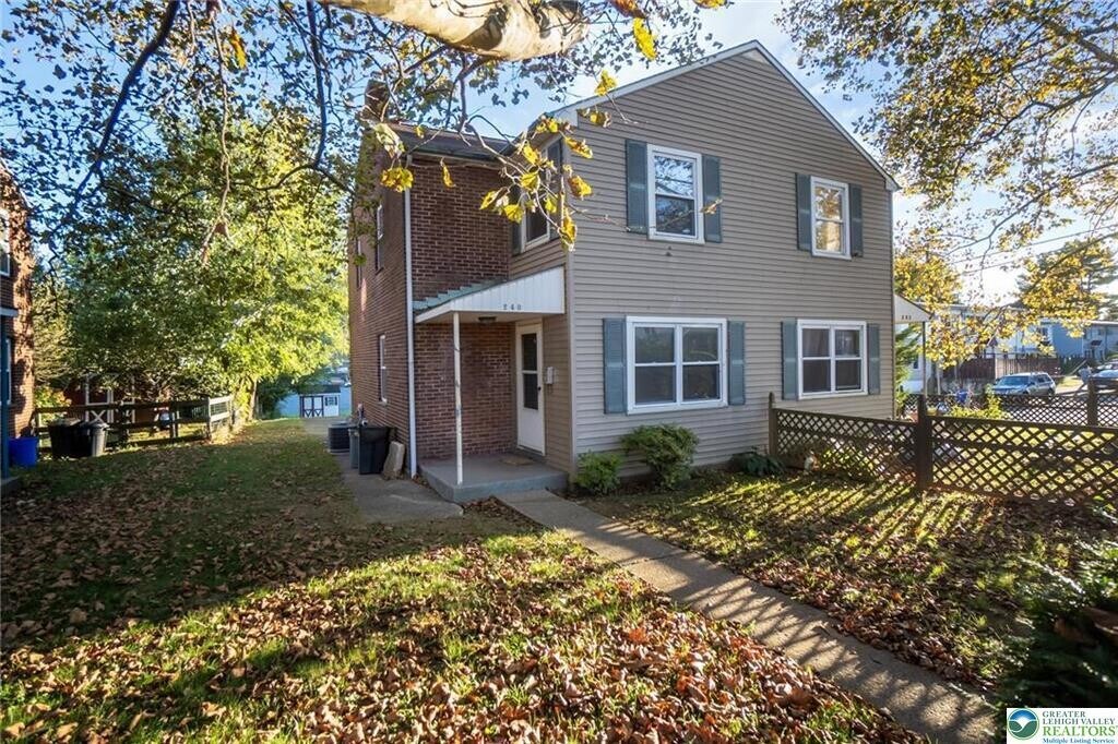 This charming 3-bedroom, 1-bath Colonial offers comfortable living with hardwood floors flowing throughout the home. The open-concept living and dining rooms feature ceiling fans and plenty of natural light, creating a warm and inviting atmosphere. A spacious kitchen provides abundant cabinets, ample counter space, and a convenient pantry. The adjoining laundry area includes direct access to the backyard. Upstairs, all three bedrooms offer hardwood floors and ceiling fans for added comfort. The full, updated bathroom features tile floors and a tiled tub/shower combo. Enjoy outdoor relaxation on the covered front porch or entertain on the concrete patio overlooking the spacious yard. Conveniently located close to major highways I-78 and US-22 for easy commute to NY and NJ, Morgan HIll Golf Course, Historic Downtown Easton, Lafayette College, shops, restaurants and so much more! This well-maintained rental is ready for you to move in and enjoy. *DOGS LESS THAN 25LBS CONSIDERED ON CASE-TO-CASE BASIS W/ADD'L PET FEE!* 1st month rent, 1 month security deposit due at the time signing lease. Please submit all rental applications with a full credit report, 2-4 most recent pay stubs, job verification letter, photo id and background check report.