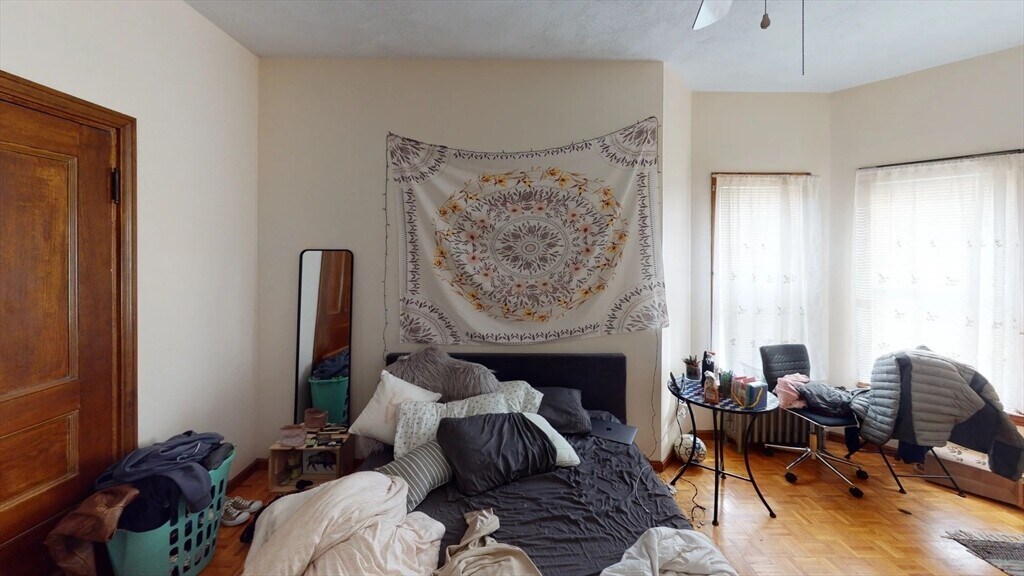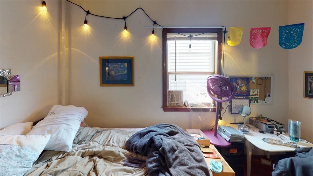 This single-story apartment showcases a blend of functionality and character. The living areas feature warm hardwood floors and large windows,allowing ample natural light. The kitchen stands out with dark cabinets,stainless steel appliances,and granite countertops. Bedrooms are personalized with tapestries,string lights,and colorful decor,creating a youthful,bohemian atmosphere. A full bathroom with white tiles and a shower/tub combination offers practicality. The apartment's open layout and multi-purpose spaces,like a study area with a desk,make efficient use of the available square footage. Radiators throughout hint at the building's vintage charm,while modern amenities ensure comfort. Parking will never be an issue with off-street parking available for one car at an additional fee of $100 per month. In addition,you'll have the convenience of free laundry facilities in the basement,making laundry day a breeze. MLS# 73478091