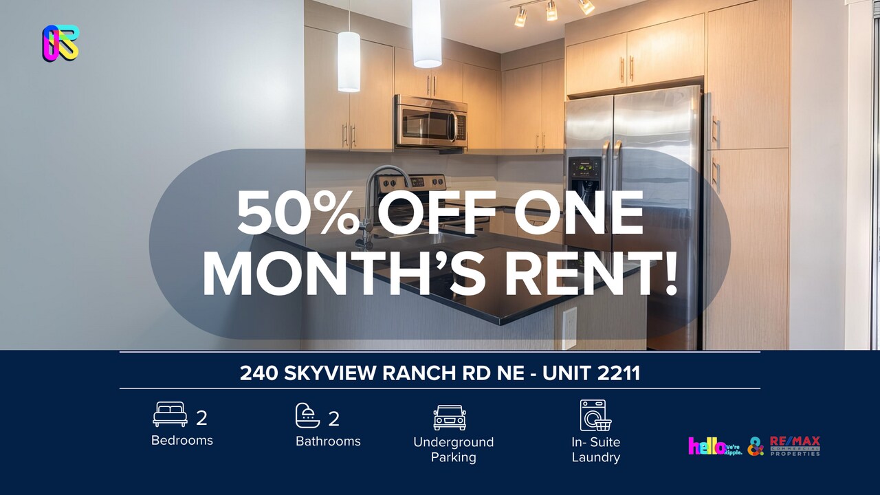 GREAT 2 BEDS/ 2 BATHS CONDO IN THE COMMUNITY OF SKYVIEW | 50% OFF FIRST MONTH VIDEO TOUR: Interested in this unit? BOOK HERE: Our automated booking system called ShowMojo will contact you within a few hours with possible showing times and dates. NOTE: Showings are in a group and not One on One INFORMATION: - Utilities Included: Natural Gas, Water - Utilities NOT Included: Electricity, Cable, Internet - Parking: Underground Parking Stall - Pets: No Pets Allowed - Smoking: Non-Smoking UNIT FEATURES: - Large living room offers access to balcony - Open concept kitchen has plenty of cabinets featuring stainless steel appliances and dining room space - Kitchen has granite countertops and pantry storage - Main Bedroom features a walk-in closet and attached full bathroom - Private bedroom with extra storage space and window coverings - Window coverings included throughout property - In-suite laundry - Large sunny balcony - Storage Included COMMUNITY FEATURES: Walking distance from shopping & groceries, tennis courts, located near bus & train, park, short distance to bike paths, river & playgrounds 50% OFF ONE MONTH FREE offer: A special savings equal to 50% of one month's rent (maximum), applied as a credit to the first month of your initial lease term. For leases with initial term less than 12 months, the incentive will be prorated accordingly. This property is professionally managed by Ripple Property Management (Powered by RE/MAX Commercial Properties)