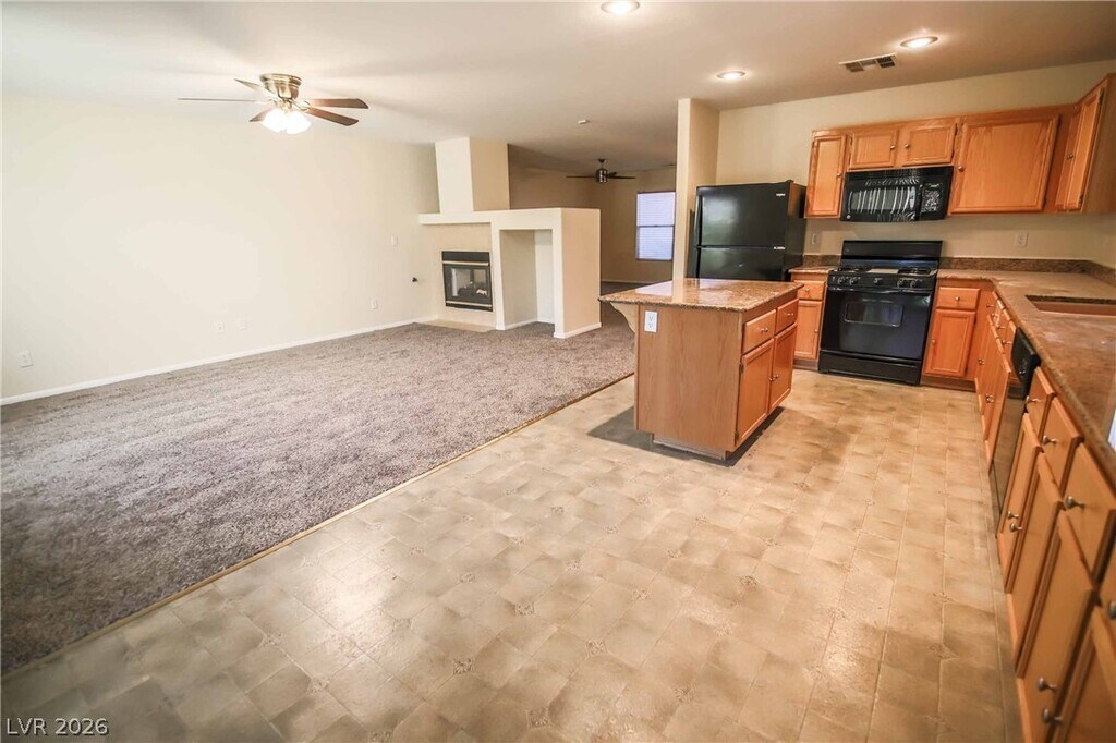 This well-maintained single-story home sits on a desirable corner lot and offers a thoughtfully designed open layout with inviting living spaces. Featuring three bedrooms, neutral paint and carpeting, and ceiling fans throughout, the home is complemented by two cozy fireplaces that add warmth and character. The kitchen stands out with a central island and granite countertops, seamlessly connecting to the main living areas for easy everyday living and entertaining. The spacious primary suite provides a comfortable retreat, while the enclosed covered patio opens to a lush backyard, creating a private outdoor setting to relax or host gatherings.
