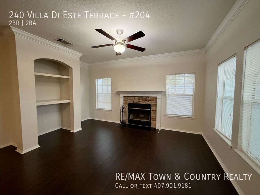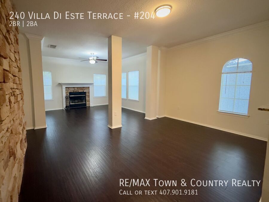 2 Bedroom, 2 bath condo with rare 2 Car Garage! This 1,478 sqft Unit was a builder model! Spacious flexible floorpan loaded with unique touches. Wood floors, Granite kitchen and bathrooms, Stainless Steel appliances; eat-in area in kitchen, spacious living space, Covered Porch plus Fireplace! Appliances include Range, Microwave, Refrigerator, Dishwasher. *Water included* Unit offers washer and dryer hookup; Located in the heart of Lake Mary- Notting Hill community includes community pool, fitness, playground and tennis. Just minutes to shopping, entertainment and I4. MOVE IN REQUIREMENTS: All RE/MAX Town & Country Realty Property Management Division residents are enrolled in the Resident Benefits Package (RBP) for $49.95/month which includes liability insurance, credit building to help boost the resident’s credit score with timely rent payments, up to $1M Identity Theft Protection, HVAC air filter delivery (for applicable properties), move-in concierge service making utility connection and home service setup a breeze during your move-in, our best-in-class resident rewards program, on-demand pest control, and much more! More details upon application. Credit Score 675+. Complete online Non-Refundable Application at