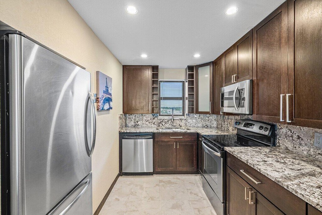 Fully renovated 2-bedroom,2-bath condo filled with abundant natural light throughout. Updated kitchen features custom cabinetry,new appliances and granite countertops. Marble flooring flows throughout the entire unit. Spacious primary suite offers walk-in closets and a double-sink vanity. Enjoy the ultimate resort-style living in a beautifully maintained golf course community offering a pool,tennis courts,gym,game room & more. With no mandatory golf membership required. Conveniently located near shopping,dining,and major roadways. DISCLAIMER: Information published or otherwise provided by the listing company and its representatives,including but not limited to prices,measurements,square footages,lot sizes,calculations,statistics,and videos,is deemed reliable but is not guaranteed and is subject to errors,omissions,or changes without notice. All such information should be independently verified by any prospective purchaser or seller. Parties should perform their own due diligence prior to a sale or listing. The listing company expressly disclaims any warranty or representation regarding such information. Prices published reflect list price,sold price,and/or last asking price. The listing company participates in the Multiple Listing Service and IDX. MLS ID B26001932