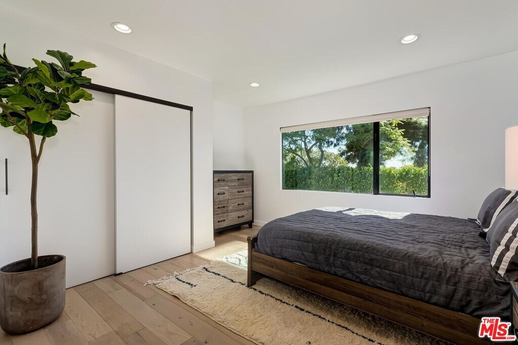 Fabulous contemporary home perched atop a corner lot in prime Los Feliz. Great open layout creates a seamless flow from the living room to the family room, dining room and kitchen. Enchanting gardens and landscaping surround the property, and each room looks out onto luscious greenery through generously sized windows and glass doors throughout. The kitchen is light and bright with Carrara marble countertops, Thermador stainless steel appliances, and tons of custom cabinetry. Lovely primary suite overlooking the backyard with custom sliding wood barn doors to the walk-in closet and bath, plus two additional bedrooms. There are covered patios at both the front entrance and backyard and tiered gardens in the back with a nicely sized grassy yard. Additional features include a laundry room off the kitchen, a full glass enclosed wine room by the entry, French white Oak floors, Lutron lighting, and a 2-car garage with an electric vehicle charging outlet. Close to the Greek Theatre, Griffith Observatory, great hikes, restaurants and all that Los Feliz has to offer. MLS# 25619157