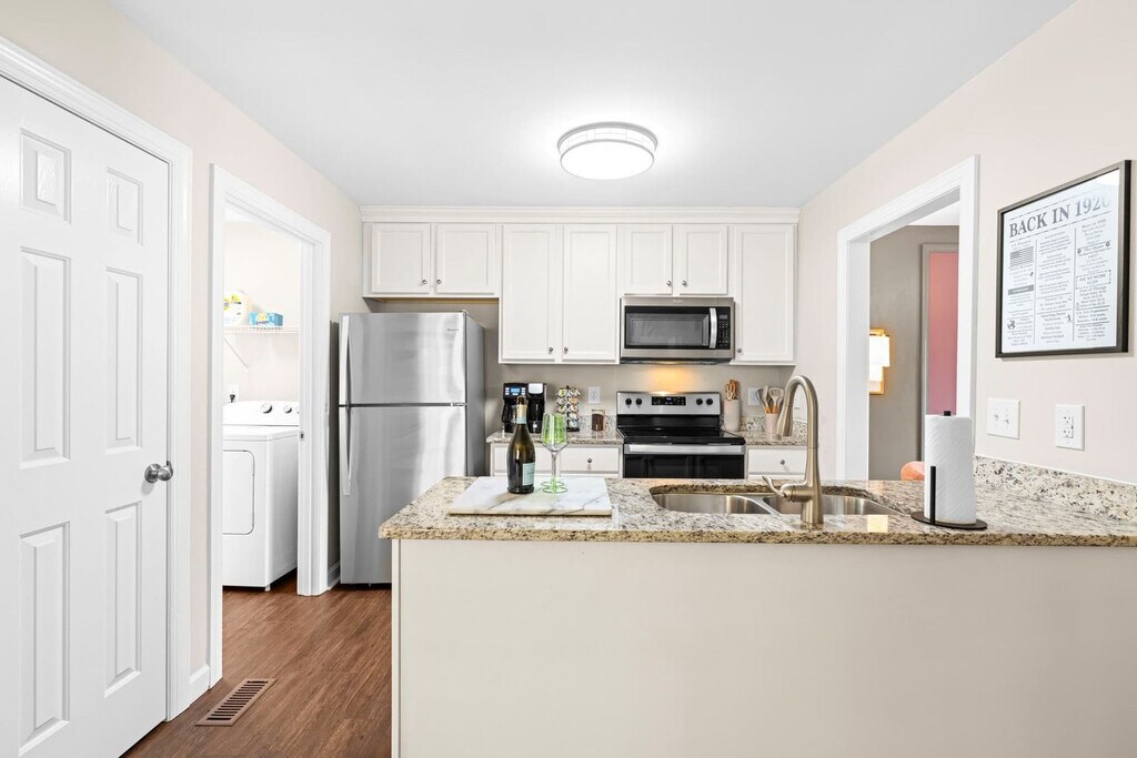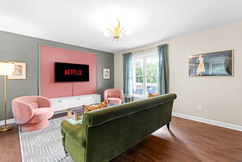 Feel at home in this 3-bedroom home in Raleigh, North Carolina, offering a perfect retreat. This two-level home features 2 bathrooms and comfortably accommodates up to 8 guests. Inside, you’ll find a bright, open living space filled with modern comforts and thoughtful touches. The fully equipped chef’s kitchen features high-end stainless appliances, a large refrigerator, ample cabinetry and cooking space, and a coffee maker. The living room features a smart TV and a large plush sofa and seating. There is also a washer and dryer for your convenience. Parking is available for 4 vehicles in the driveway, and street parking is allowed for 2 vehicles. Located in a lively Raleigh neighborhood, the home offers easy access to parks, trails, local dining, and downtown Raleigh’s top cultural attractions. Nearby restaurants include La Cucina Italiana Raleigh, Seasons 52, Neomonde Mediterranean Raleigh, Relish Craft Kitchen & Bourbon Bar, and The Kitchen Table at Relish. Nearby attractions include William B. Umstead State Park, Pullen Park, North Carolina Museum of Art, Marbles Kids Museum, and Ann and Jim Goodnight Museum Park. Check-in is at 4pm and check-out is at 10am. No parties are allowed—violations may result in immediate termination of the stay. An exterior camera is installed solely to monitor the cleaning team for quality and security purposes. Guests must be 21 years or older to book this property. Pets are not allowed. Includes a dedicated workspace. Registration Number: ZSTR- [SI]