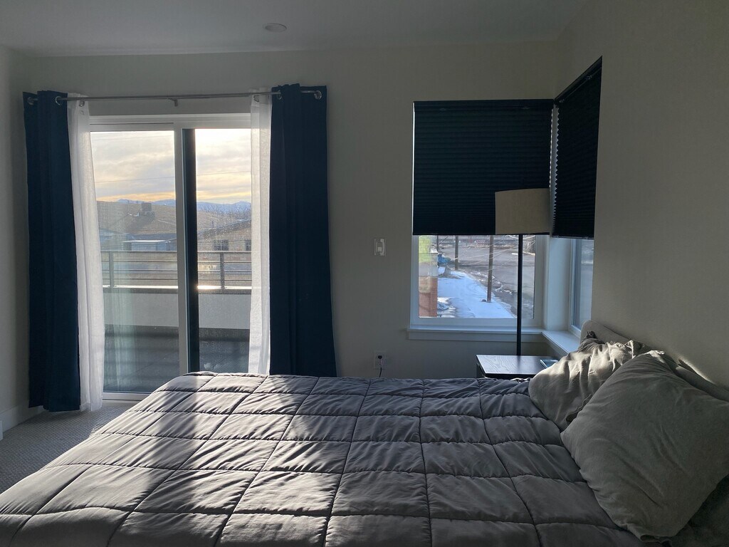 Modern Multi-Level Townhome with Mountain Views 1 Bed • 1.5 Bath • 908 sq ft Recently built, light-filled townhome offering comfort, convenience, and stunning mountain views. Perfect for one or two people. Highlights: Main level with hardwood floors- cozy carpeted bedroom level Ample outdoor living: elevated front porch, private bedroom balcony, and rooftop deck with panoramic mountain views In-unit washer & dryer Designated off-street parking Excellent walkability: blocks from restaurants, breweries, and fitness clubs along S Broadway 10-minute walk to South Pearl Street, nearby parks- a few minutes’ drive to DU campus Only 2.5 blocks from the light-rail station to downtown