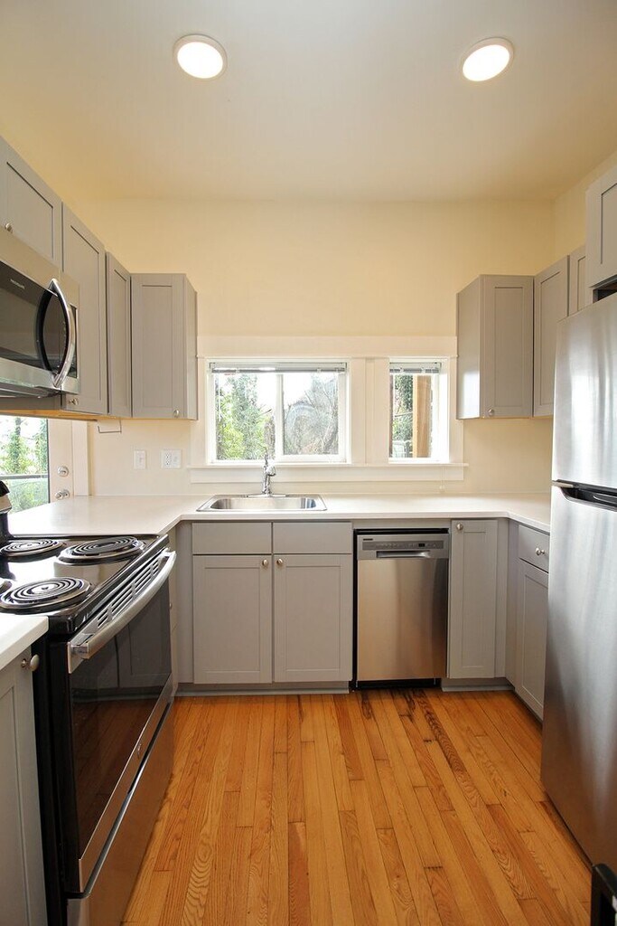 This 4-unit building, originally built in 1912, has been recently fully remodeled and updated from top to bottom, with some of the most amazing views in Portland. Features Include: • Spacious 800 sf 2-level unit with amazing views! • Fully restored and remodeled with a contemporary vibe • Gleaming, refinished hardwood floors (carpet in bedrooms) • 2 Bedrooms – 1 on lower level / 1 on main • High Ceilings throughout • Big windows = great light • Updated Kitchen with solid-surface counters and new stainless appliances. • Spacious Living Room with wood-burning fireplace • Insulated windows throughout • Updated Bathroom • Spacious private patio area • Electric heat • Stacked full-sized Washer & Dryer • $75.00 water / sewer / trash surcharge • Fantastic West Hills location – minutes to downtown, OHSU and freeway • Don’t miss this one – it’s stunning and unique! - Renter's Insurance Required - * Pets Negotiable with additional security deposit, but NO dogs please! ** Please Note: This unit is not ADA compliant *** Per City of Portland/Multnomah County law, we cannot accept applications for this property until 12:30pm on Thursday, April 9th. Any application submitted before that day and time will be considered received at 8:30pm on Thursday, April 9th as an 8 hour penalty.