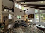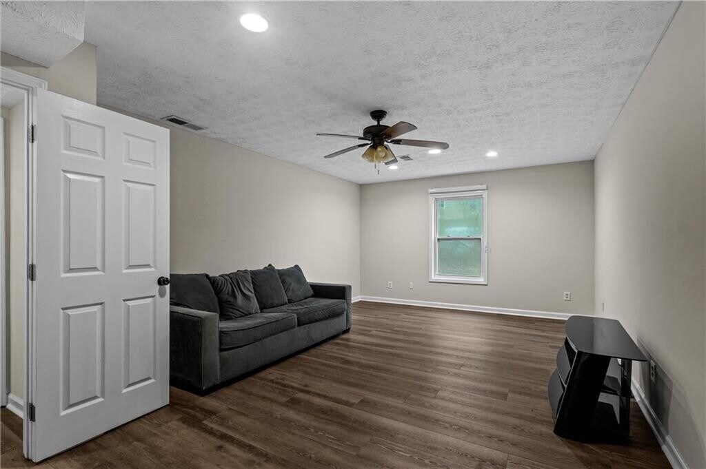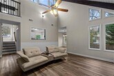 Discover this beautifully designed 4-bedroom,2.5-bath contemporary split-level home offering both style and functionality. Step into a bright and airy living space featuring soaring cathedral ceilings with exposed beams that create an open,welcoming atmosphere. Gleaming hardwood floors flow throughout the main areas,while the bathrooms are finished with elegant tile. The kitchen is a chef's delight,showcasing granite countertops,crisp white cabinetry,and a full suite of modern appliances. The expansive great room is perfect for entertaining,with direct access to a large,private,fenced backyard ideal for gatherings or quiet relaxation. Retreat to the primary suite,complete with trey ceilings,dual closets,and a luxurious en-suite bath designed for comfort. Additional highlights include a one-car side-entry garage and a generous driveway that accommodates multiple vehicles. Conveniently located near I-75,I-575,and Canton Highway,with easy access to shopping,dining,and everyday essentials. This bright and inviting home is a rare find schedule your tour today before it's gone!