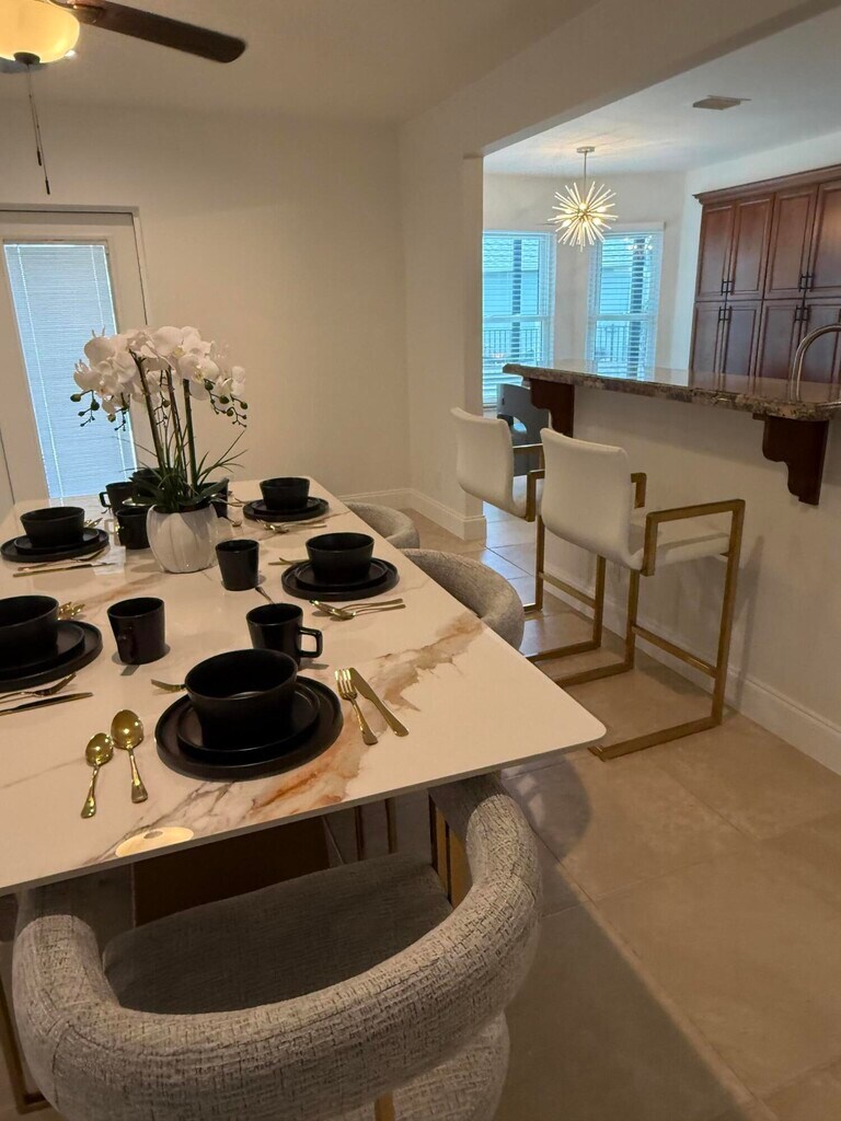 Beautifully renovated Single House with new furniture and appliances. 5 rooms bedrooms(2 King size and 3 Queen size), 3.5 bathrooms, laundry inside. Residence with big pool and yard(The pool extra layer and screen), 2 cars garage, plus golf car available. The community has a private park inside for kids and adults, community amenities include basketball courts and a playground. Bring your client, everyone is Welcome!!!