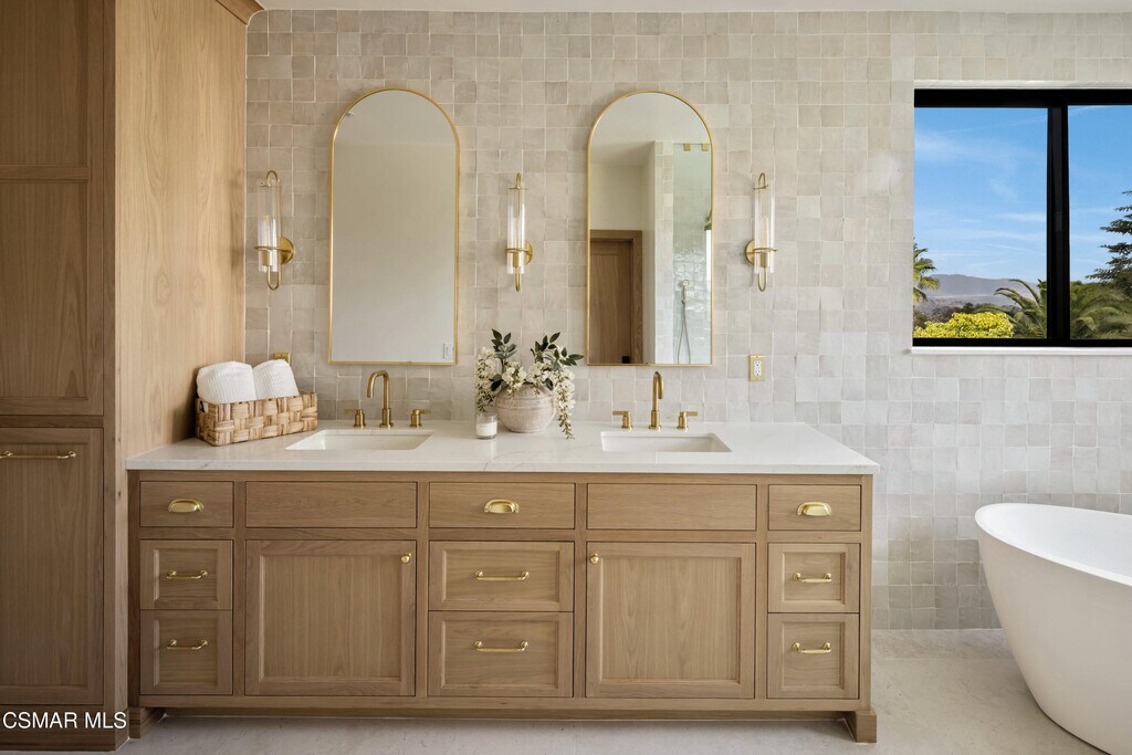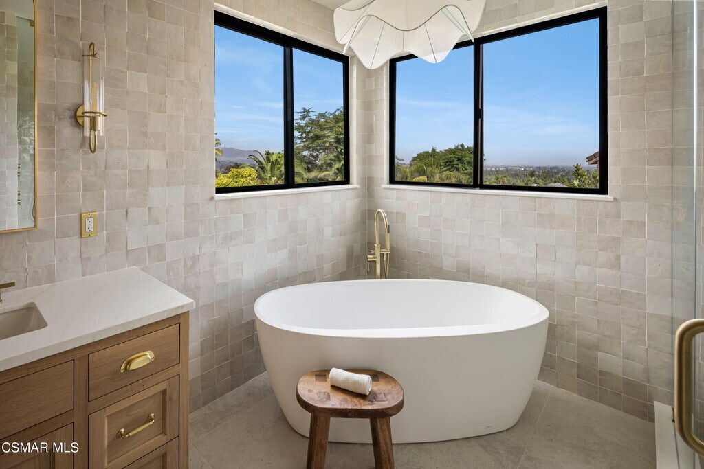 Warm, Refined, and Timeless West Hills Transitional Home Meets Family-friendly Design!Welcome to a truly one-of-a-kind, fully reimagined 5-bedroom, 4.5-bath luxury residence that has been thoughtfully crafted for discerning buyers who value high-end design, comfort, and function. Inside, the custom floor plan showcases expansive living spaces, raised door headers for an elevated aesthetic, and two luxurious primary suites -- one on each level -- ideal for multi-generational living or hosting guests.The designer chef's kitchen and beautifully crafted custom cabinetry throughout the home reflect a commitment to quality and timeless sophistication, while two separate laundry hookups add everyday convenience and practicality for busy households.Designed for seamless indoor-outdoor living, the main living area and upstairs primary suite both feature oversized bifold sliders that open to a private entertainer's oasis -- complete with a large stunning pool, built-in BBQ, and panoramic views. Upstairs, a generous deck off the primary suite provides a serene escape with stunning views, perfect for morning coffee or evening relaxation.From the designer tiles, custom plaster range hood, architectural elements inserted throughout, refined stone and smooth stucco exterior, every detail has been meticulously selected. Take comfort in knowing that nearly everything in this home has been replaced and modernized, including brand new Milgard windows, a new HVAC system and water heater, upgraded plumbing throughout the entire house, new rain gutters, and a newly replaced yard drainage system -- offering peace of mind and modern efficiency. Whether you're entertaining on the weekends or enjoying quiet family evenings, this warm and inviting modern masterpiece delivers the perfect balance of luxury, comfort, and lifestyle.