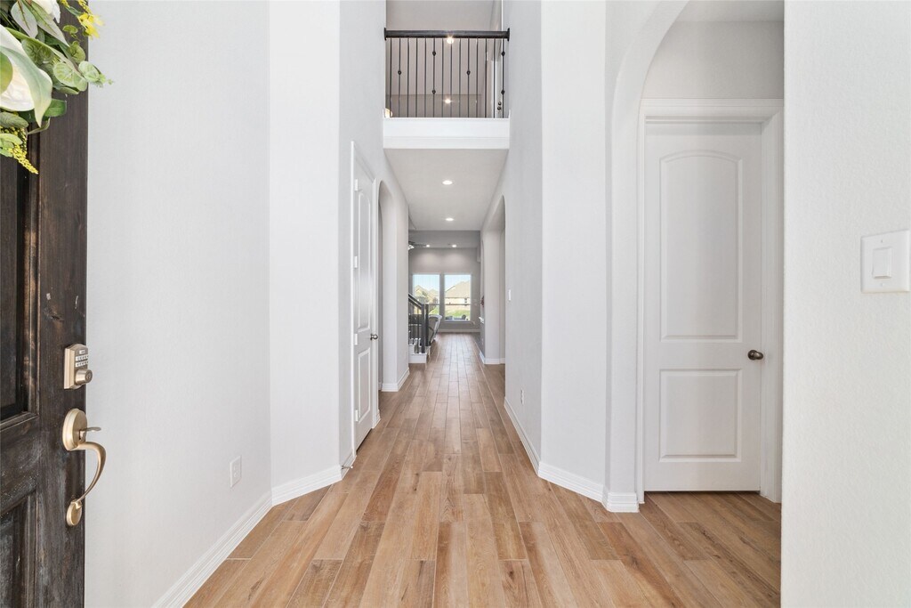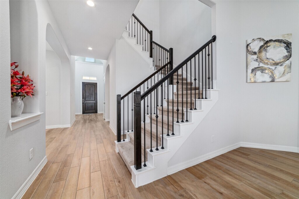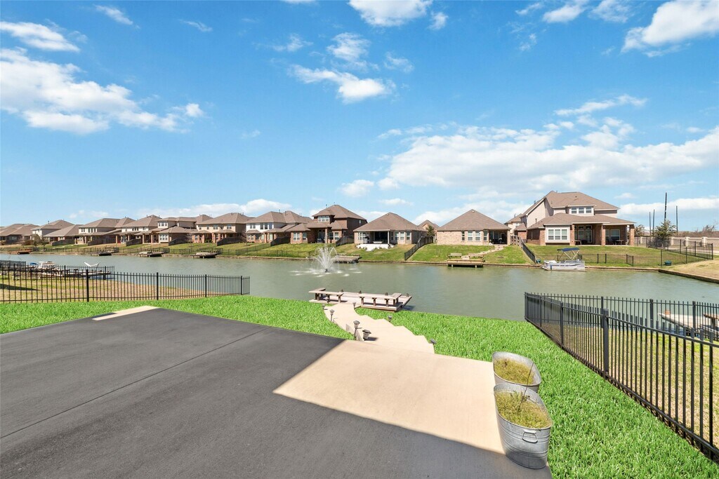 WELCOME TO LAKEVIEW HOUSE! This stunning 4-bedroom,4.5-bath home sits on a lakeview lot with high ceilings and an open-concept design. It features 2 downstairs bedrooms with en-suites and a home office. The modern island kitchen boasts quartz countertops,white 42" cabinetry with hardware,an open-concept breakfast bar,and built-in stainless appliances. The family room,with soaring ceilings,offers breathtaking water views and tile flooring throughout the main living areas. The private primary suite includes dual vanities,a large soaking tub,and a separate shower. Upstairs,you'll find a spacious game room with lake views from the balcony,a media room,and generously sized secondary bedrooms. Additional features include a whole-home water filtration system and water softener. Relax on the covered patio while enjoying the serene water views. Zoned to KATY ISD. Located with easy access to I-10 and the Grand Parkway. Katy Asian Town,LaCenterra at Cinco Ranch,and more! MLS# 77609867