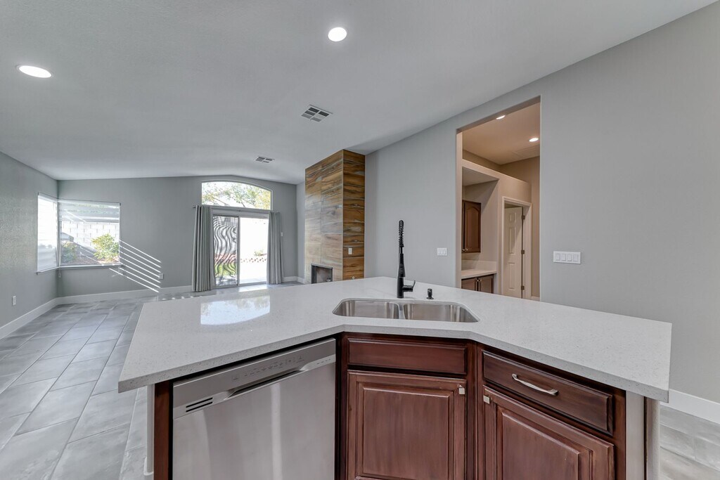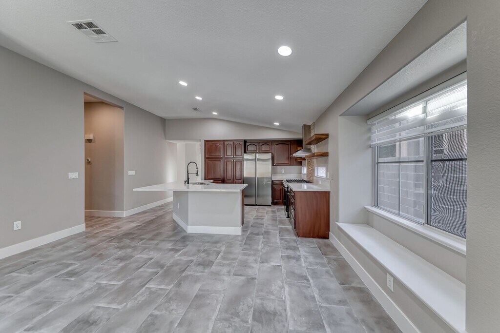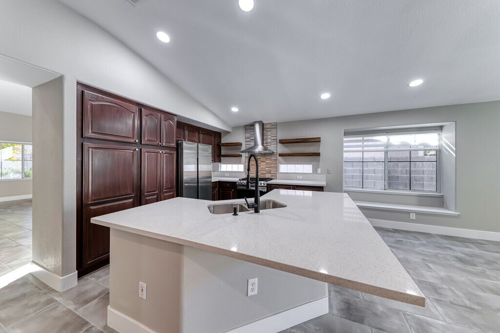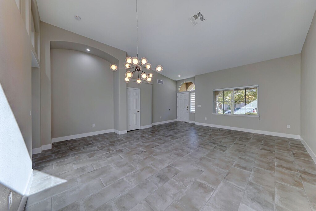 This property has been completely remodeled and updated throughout! It features beautiful tones and upgraded appliances. The spacious kitchen boasts a large island and custom shelves, making it truly unique for a rental. Conveniently located near everything, you will love the area. It is situated in the sought-after Summerlin North, known for its larger trees and shaded streets. Currently occupied. Applicants must have a FICO score above 650 and an income greater than three times the rent. An additional $45 will be required from the tenant to cover trash and sewer services. Broker owned. Email: or for Questions.