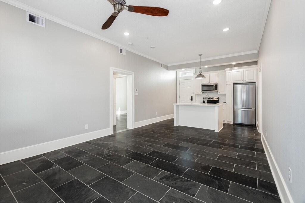 Impeccably finished 1st floor loft. Tile floors with 12 foot ceilings. Central air and heat throughout and stainless appliances and quartz countertops in kitchen. Monthly parking is available for $75 per month. A separate utility package is also available for $175 per month which includes internet,water,electricity and trash. Long term lease includes access lo large private deck on thirs floor. MLS# 78329105