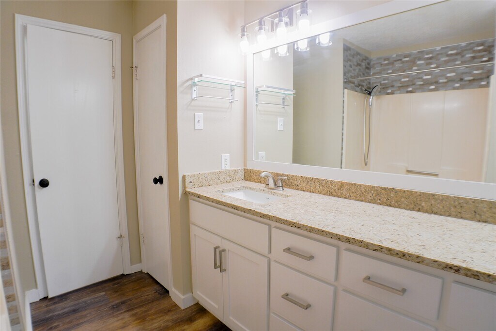 AVAILABLE NOW! This ground floor unit is updated and move in ready! Featuring new appliances plus a washer and dryer,new kitchen soft close cabinets,new flooring a beautiful fireplace and new a/c unit. The kitchen also has granite countertops. This unit looks brand new! It also offers dedicated parking and is conveniently close to SHSU. There is also access to the community pool. MLS# 11392237