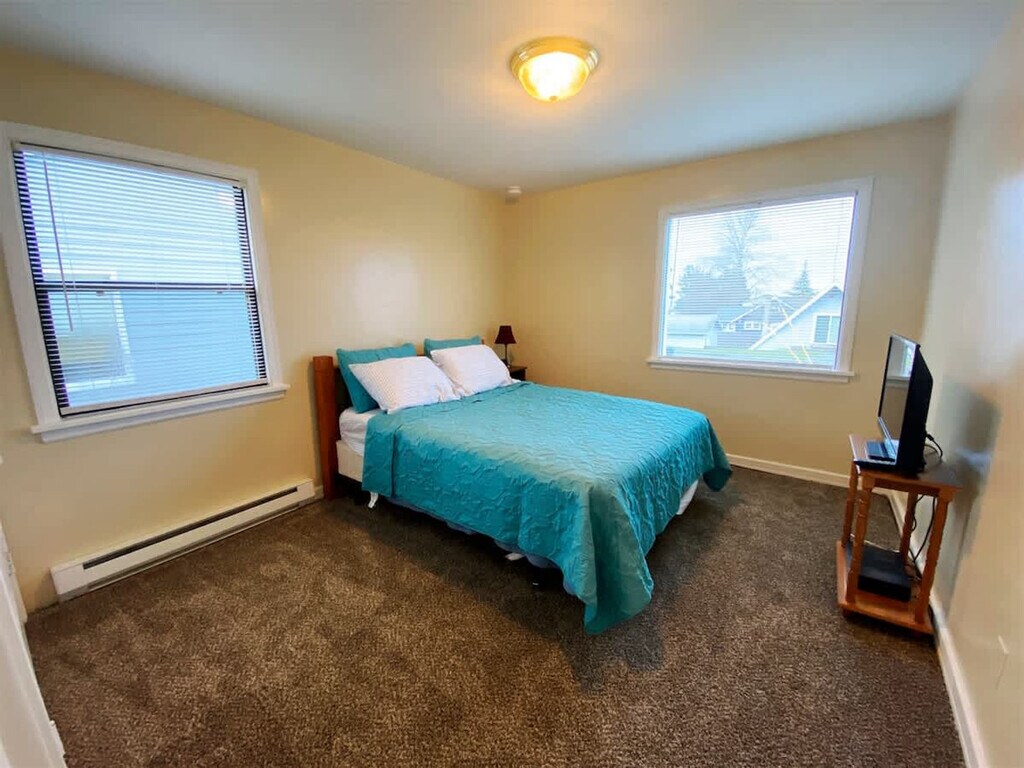 Feel at home in this bright, neutral 2-bedroom bungalow nestled in the hills of Port Angeles. This house offers a convenient location, just a 5-minute drive to the Olympic Park Visitor Center and 20 minutes from Lake Crescent. Relax in the warm and inviting living area with a new sofa and chairs, cable TV, and free Wi-Fi. The well-equipped kitchen includes pots and pans, a range, an oven, a microwave, and a fridge. A washer and dryer are also available. The hall bath has a tub/shower combo with all towels provided. If you have bicycles or kayaks, you can bring them into the private, fenced patio in back. This home base is only 30 minutes from Olympic National Park, where you can drive up to Hurricane Ridge for spectacular views and an easy hike. Unauthorized pets will incur a $250 penalty fee and you are subject to immediate eviction. If pet droppings are found on the property there will be an extra charge of $35 per pile. Renters who do not comply with the non-smoking policy may be asked to leave without a refund and may be assessed with a $300 smoke removal fee, charged to the renter’s credit card. Tampering with outside cameras is cause for immediate cancellation of the reservation with no refund. Check out is at 11 AM, overstaying will be penalized with $50 USD per hour. [SI]